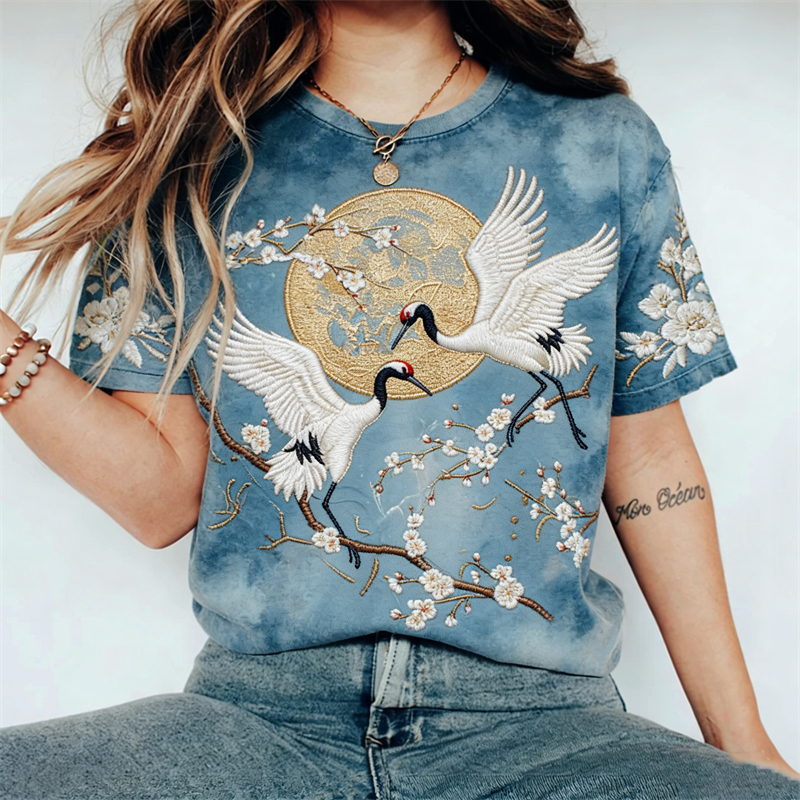 Vintage Leopard And Animal Patchwork Art Pattern Linen Blend Loose Round Neck Tops