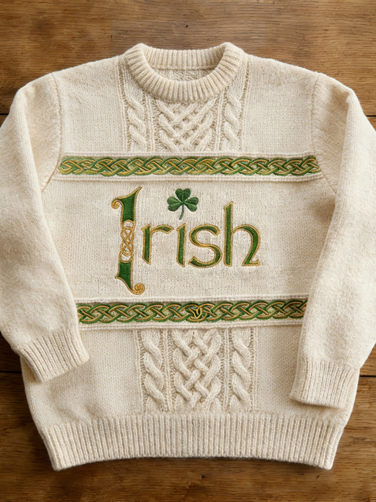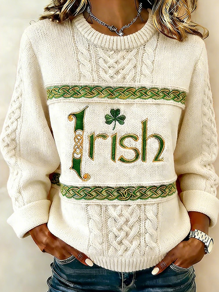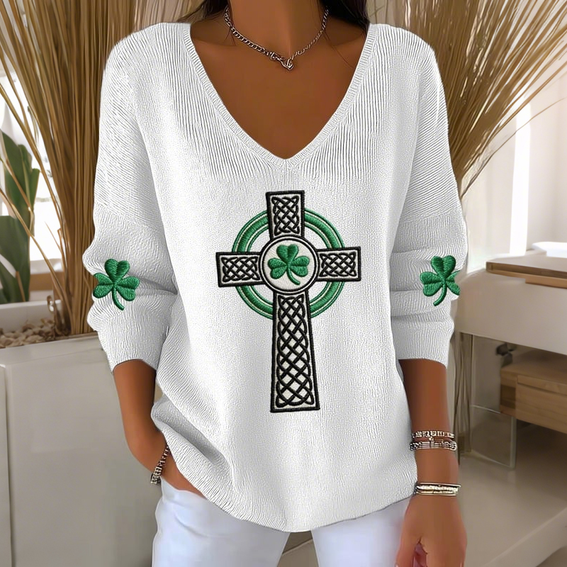 Women's Vintage St Patrick's Day Shamrock With Celtic Knot Art Loose And Comfortable Cotton And Linen V Neck Shirt
