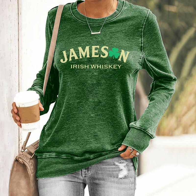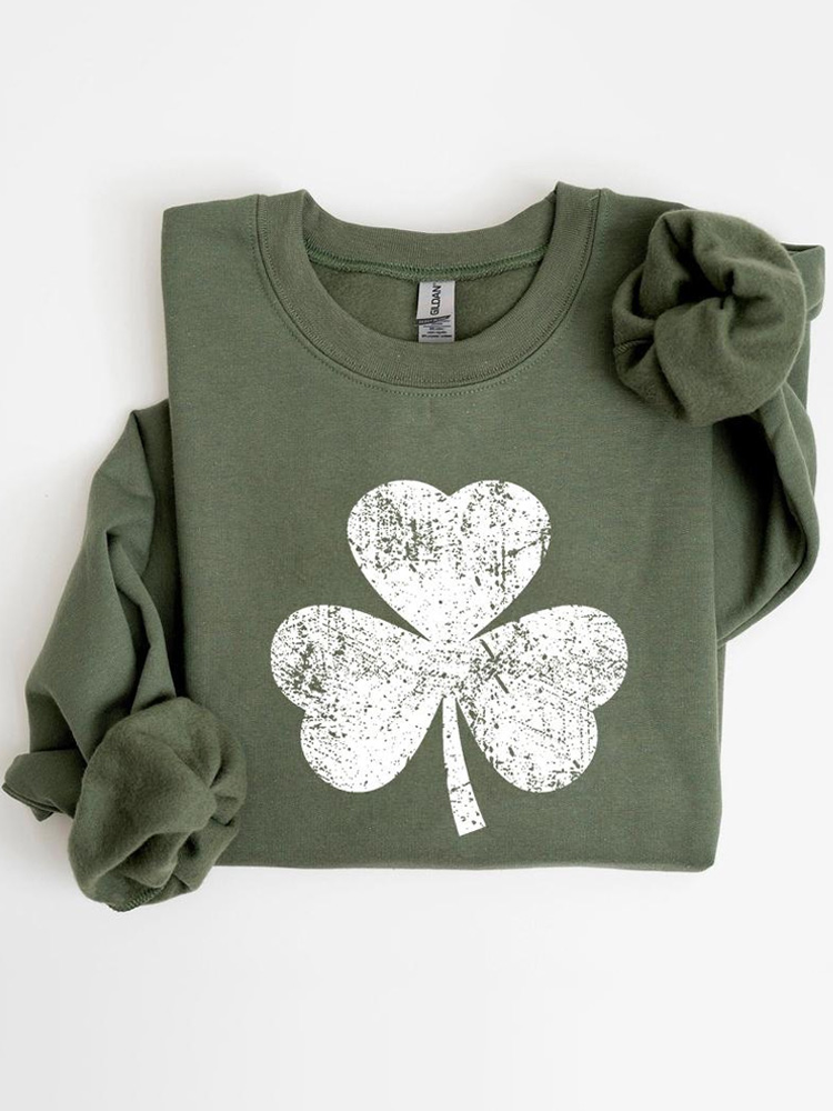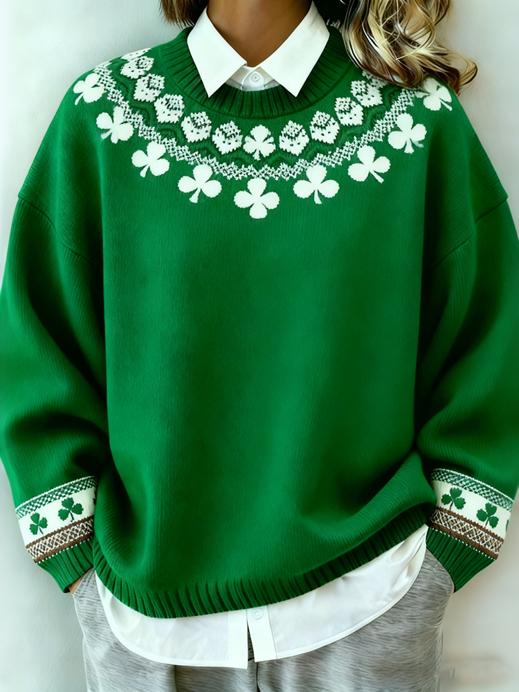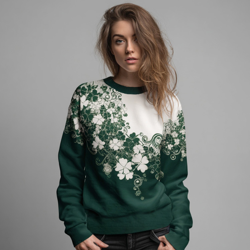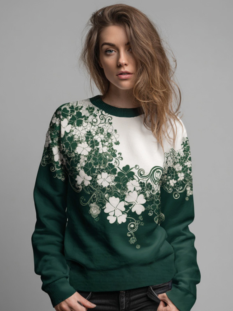 Women's St. Patrick's Day Shamrock Print Color Block Comfortable Crew Neck Sweatshirt