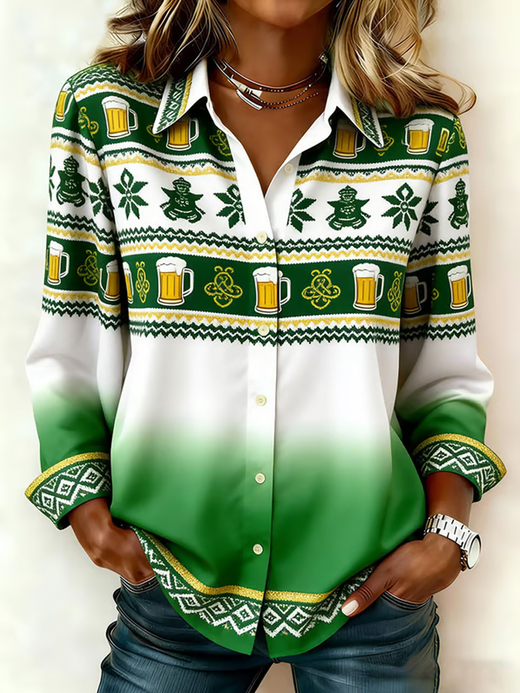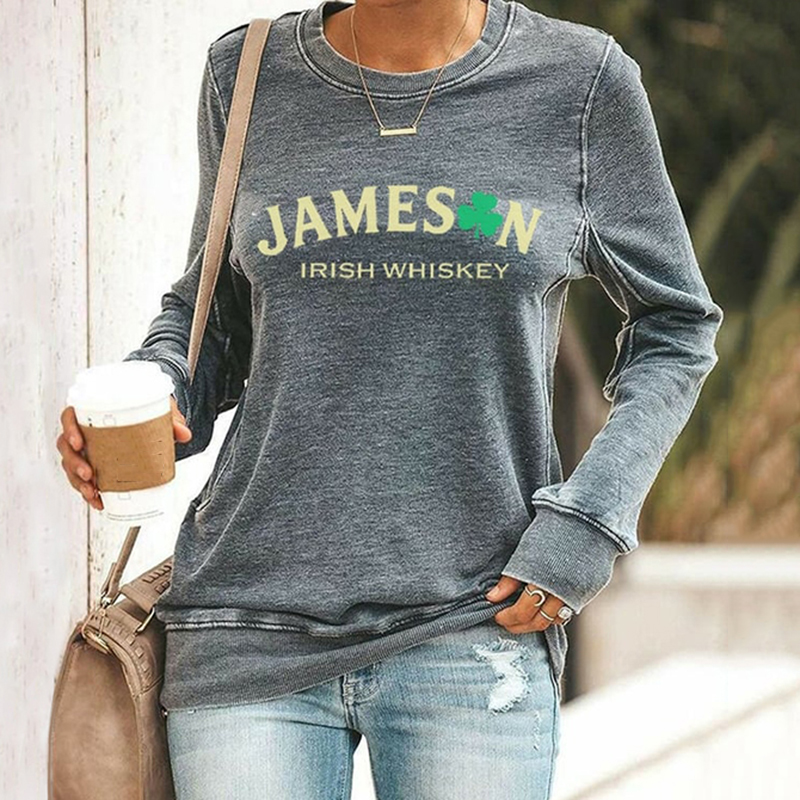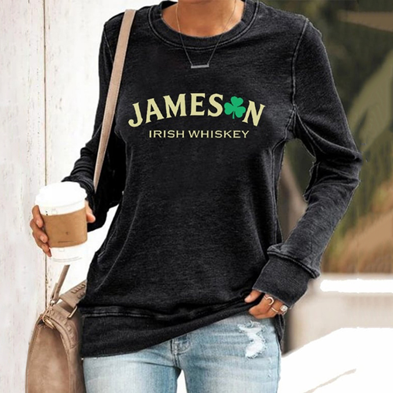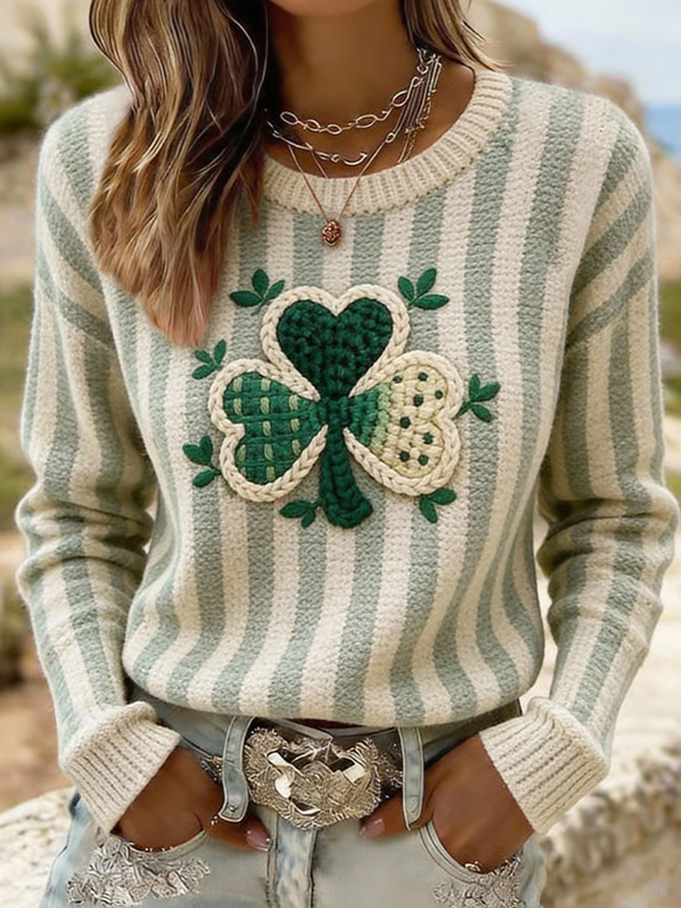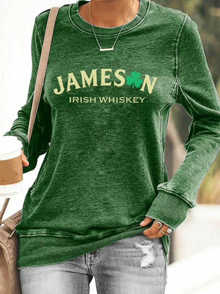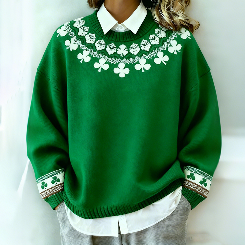 Women's St. Patrick's Day Shamrock Print Color Block Comfortable Crew Neck Sweatshirt