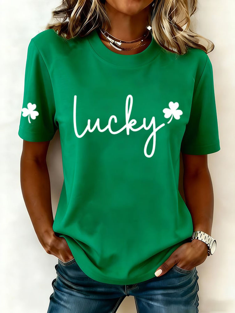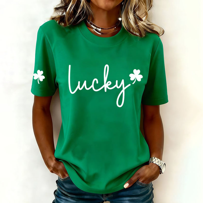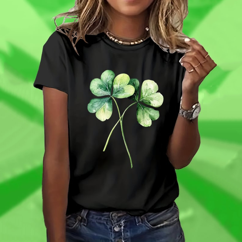 Women's Tie-dye Style St. Patrick's Day Shamrock Pattern Comfortable Crew Neck T-shirt