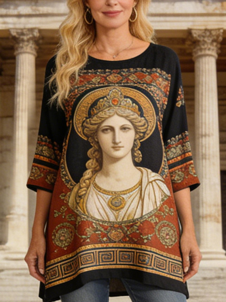 Greek Goddess Vintage Women's Linen Flowy Shirt