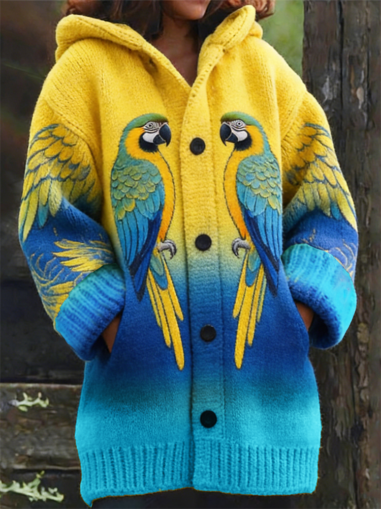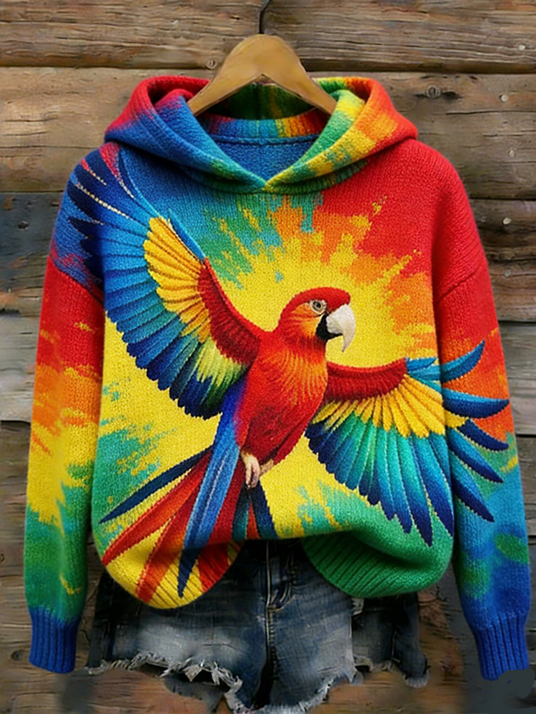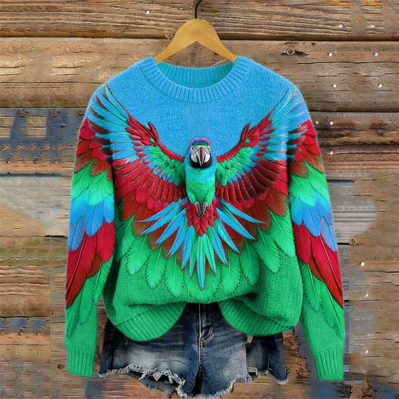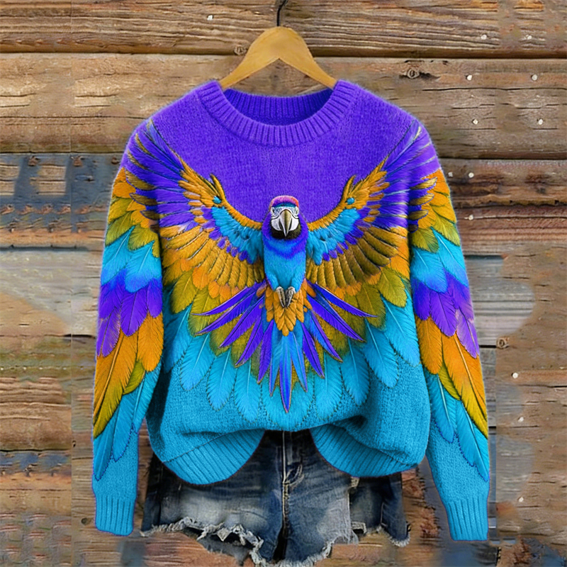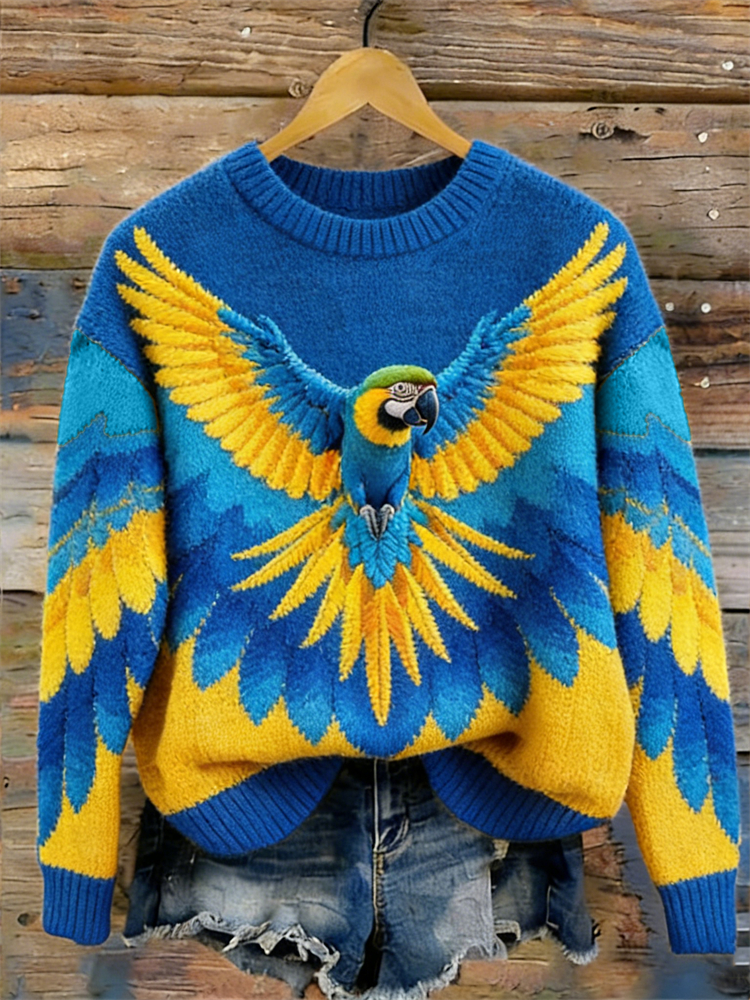 Colorful Macaw Parrot Inspired Contrast Cozy Knit Sweater