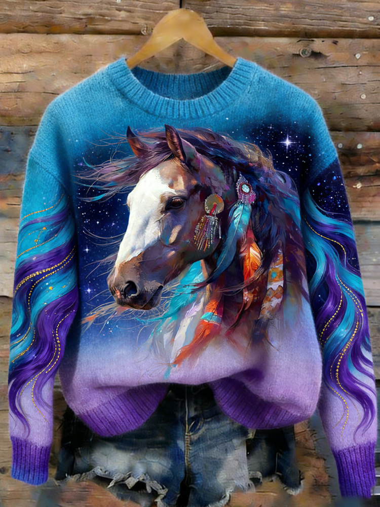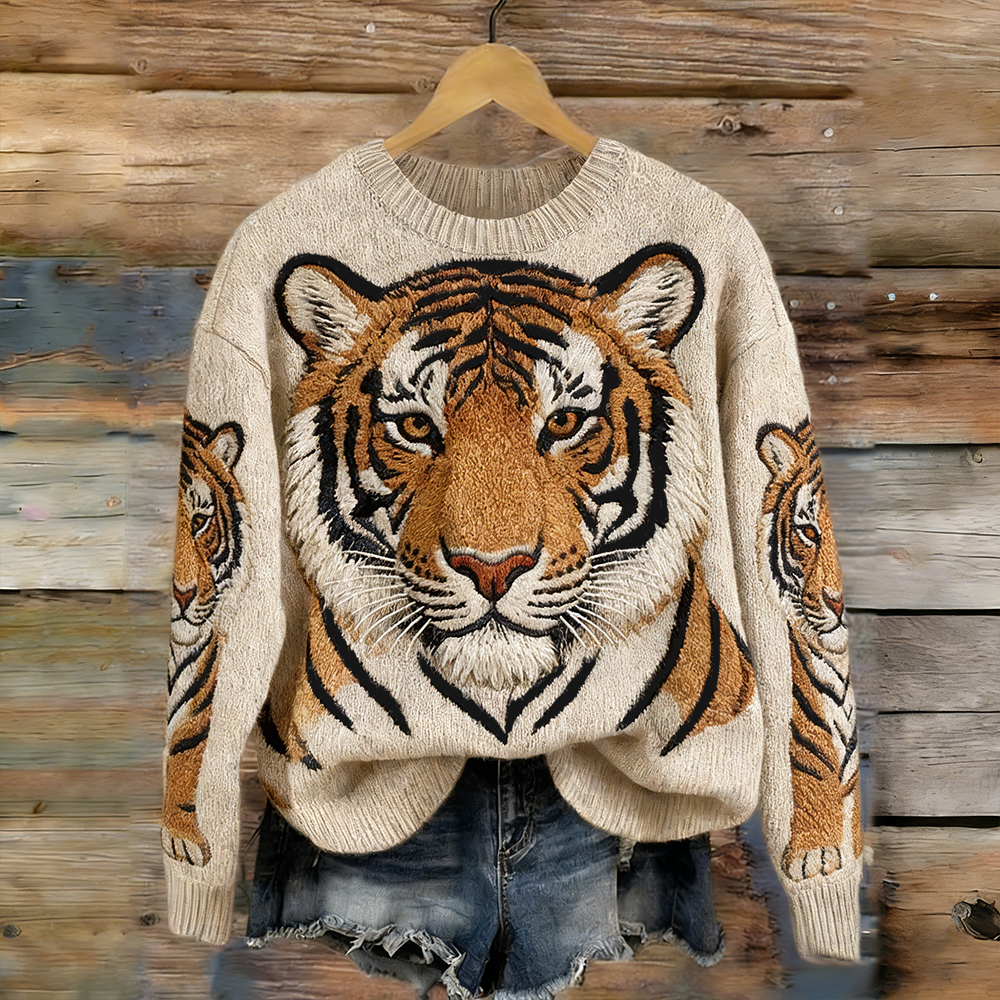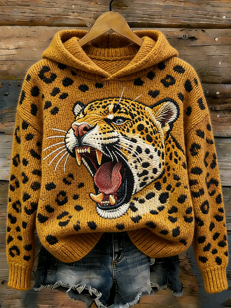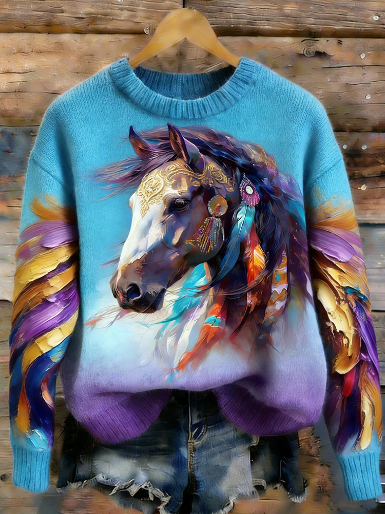 Colorful Macaw Parrot Inspired Contrast Cozy Knit Sweater
