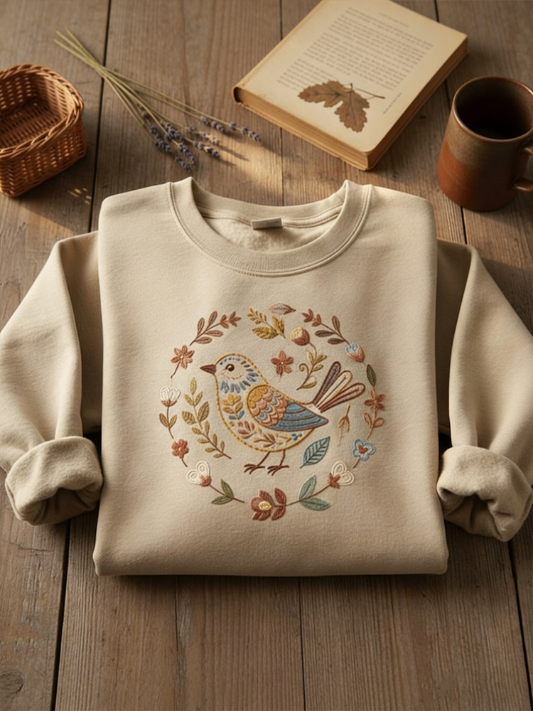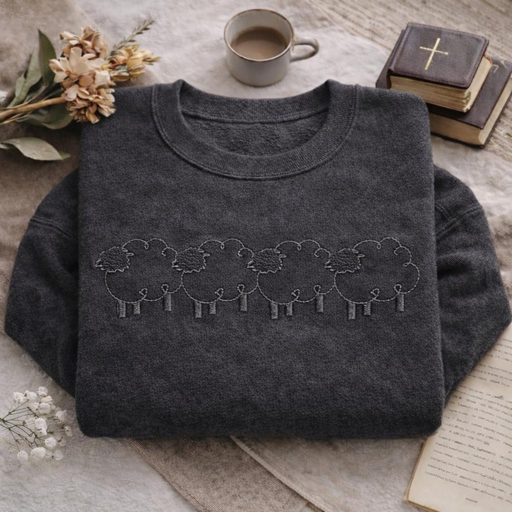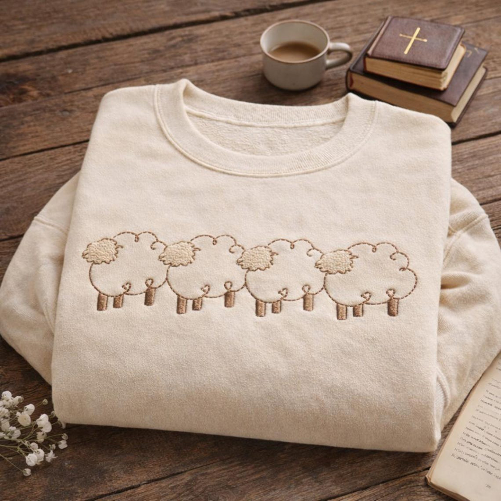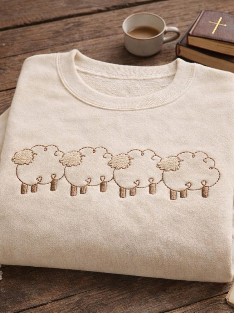 Vintage Cute Sheep Embroidery Art Comfy Sweatshirt