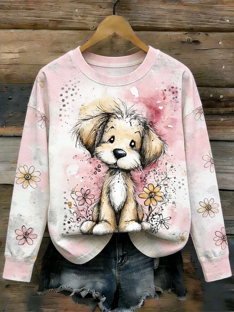 Little Dog Companion Leisure Round Neck Sweatshirt