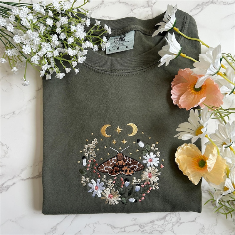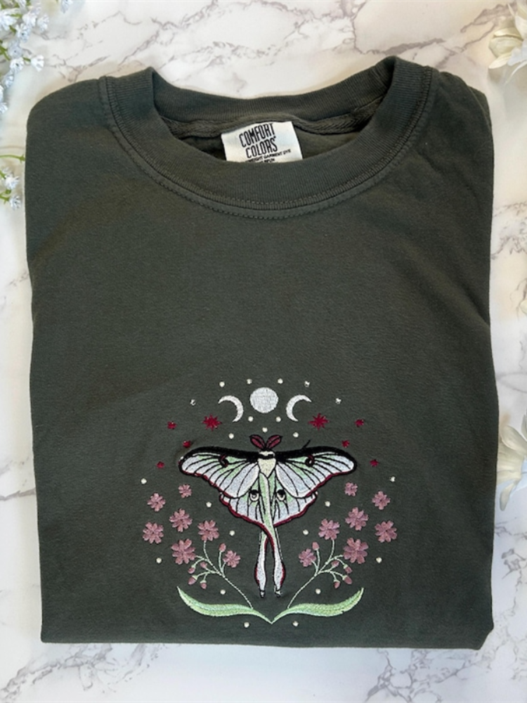 Cottagecore Luna Moth Embroidered Sweatshirt