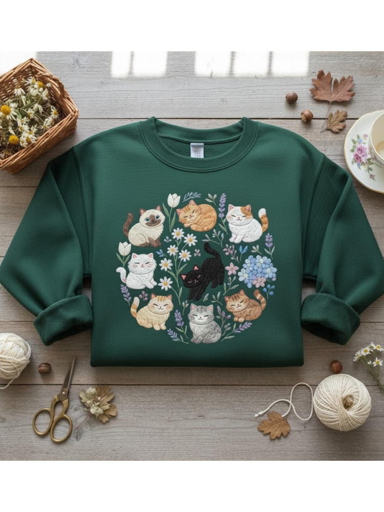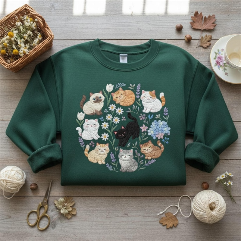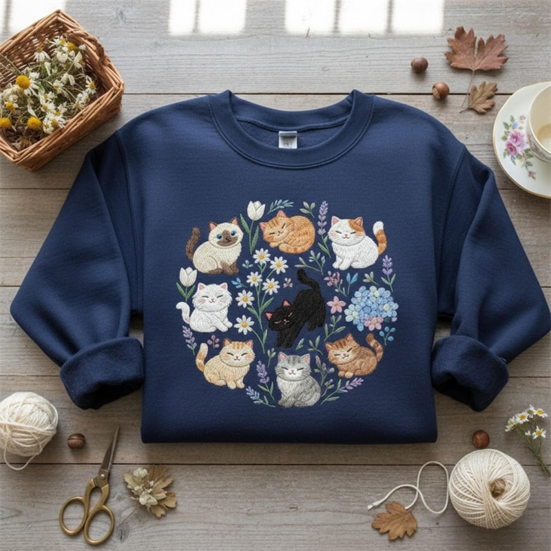 Lovely Calico Cat Floral Art Cozy Sweatshirt