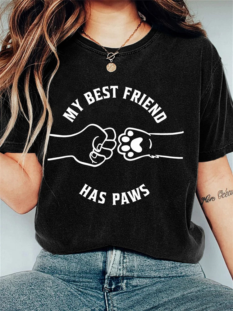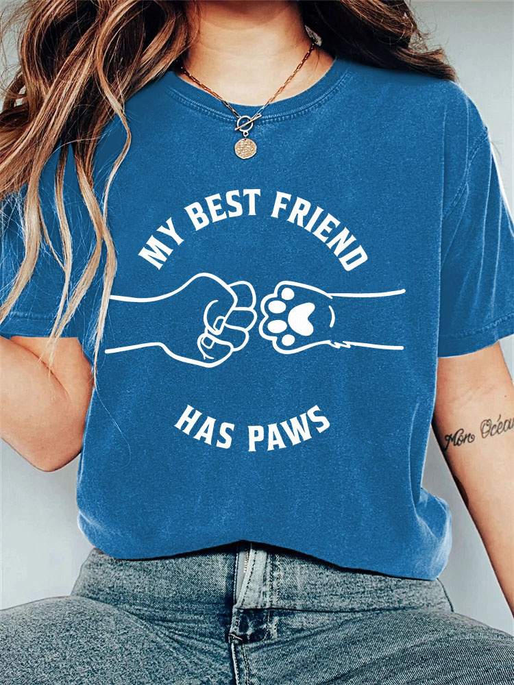 My Best Friend Has Paws And Dog Hand Fist Bump Print Casual Vintage T-Shirt