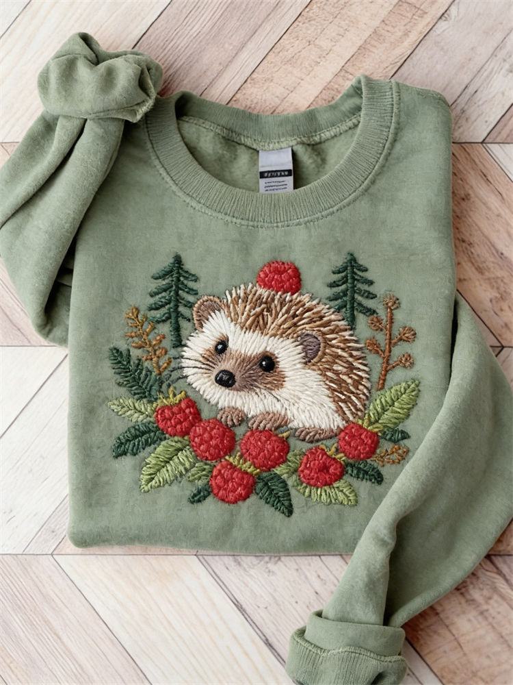 Cute Hedgehog Pattern Design Casual Round Neck Sweatshirt