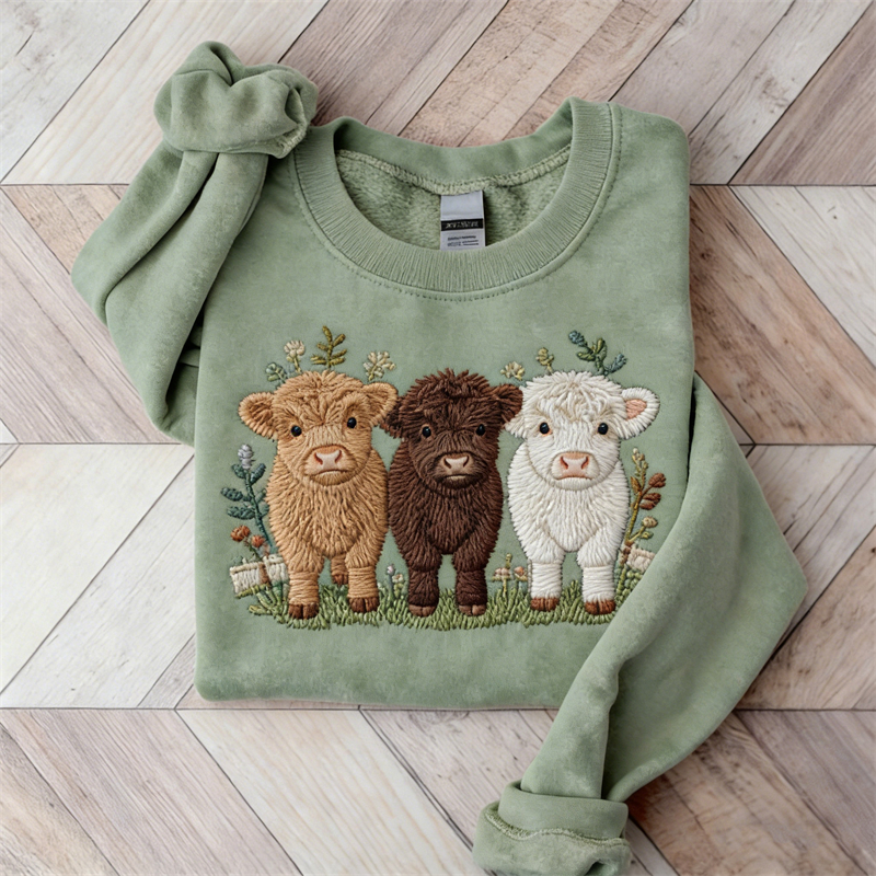 Lovely Highland Cows & Farm Plants Cozy Sweatshirt