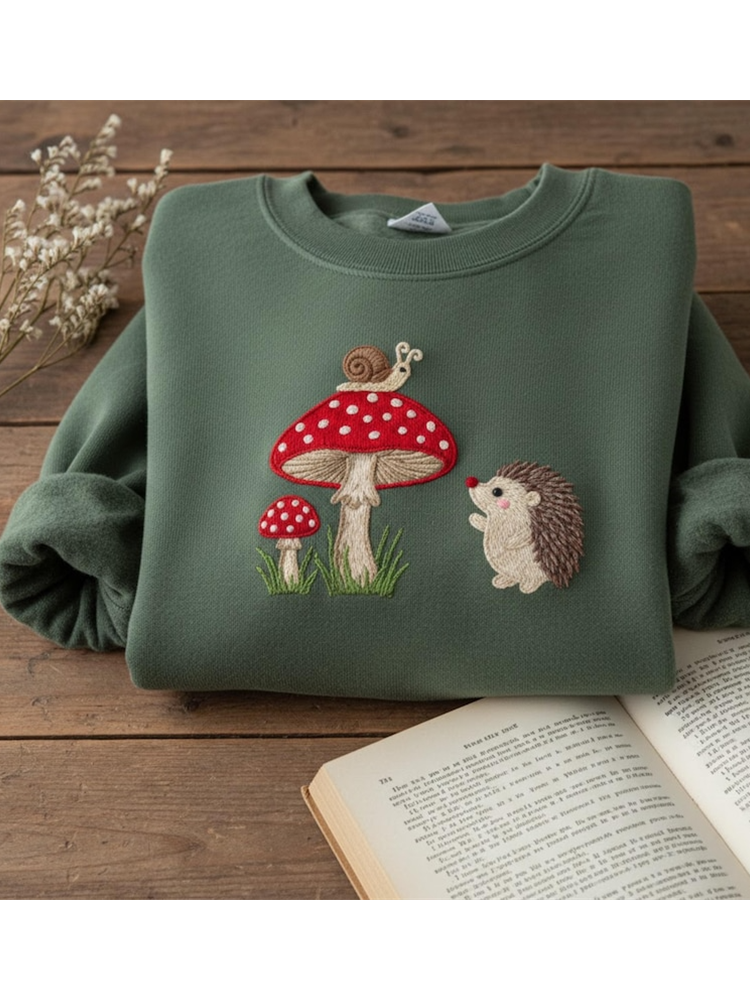 Embroidered Hedgehog Snail Mushroom Sweatshirt