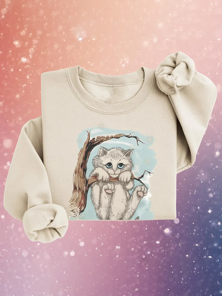 Opalite Kitten In Tree Art Cozy Sweatshirt