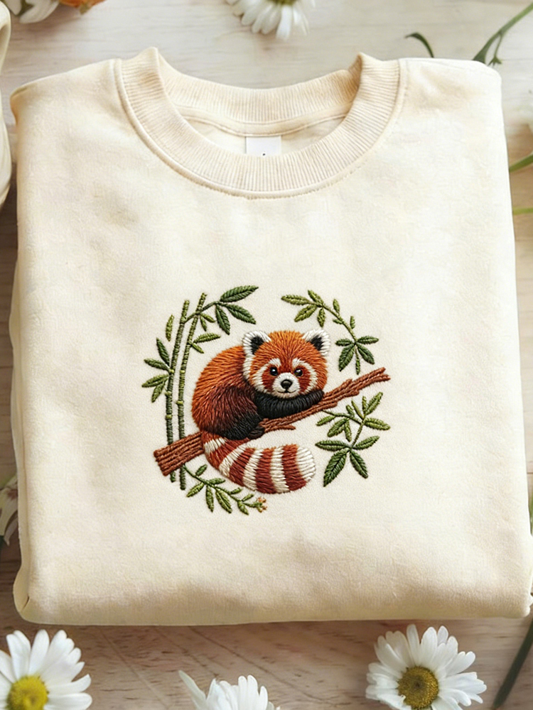 Cute Red Panda Embroidery Art Comfy Sweatshirt