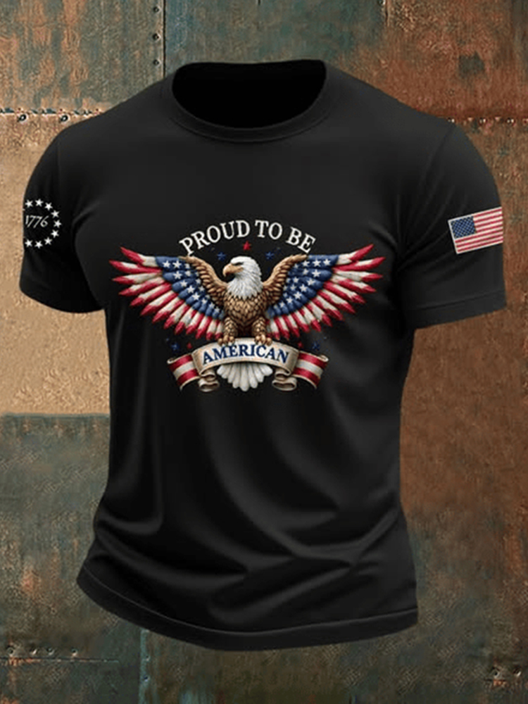 Men's Proud To Be American Bald Eagle American Flag Independence Day Print T-shirt