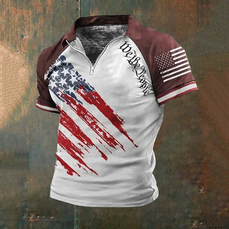 Men's Vintage Independence Day Flag Print Casual Polo Shirt