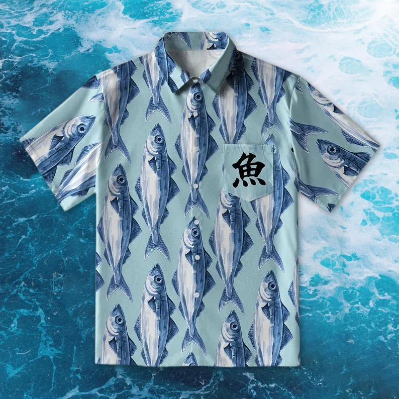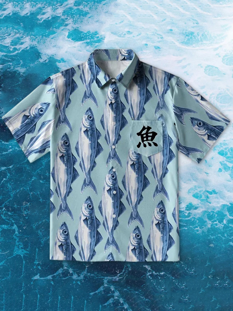 Japanese Fish Pattern Print Casual Shirt