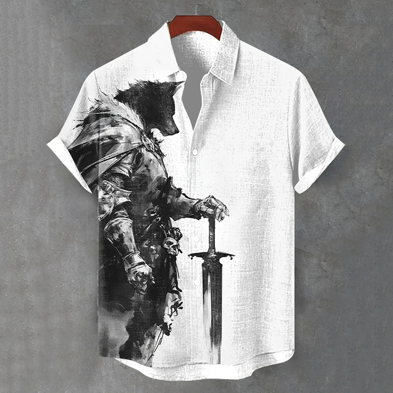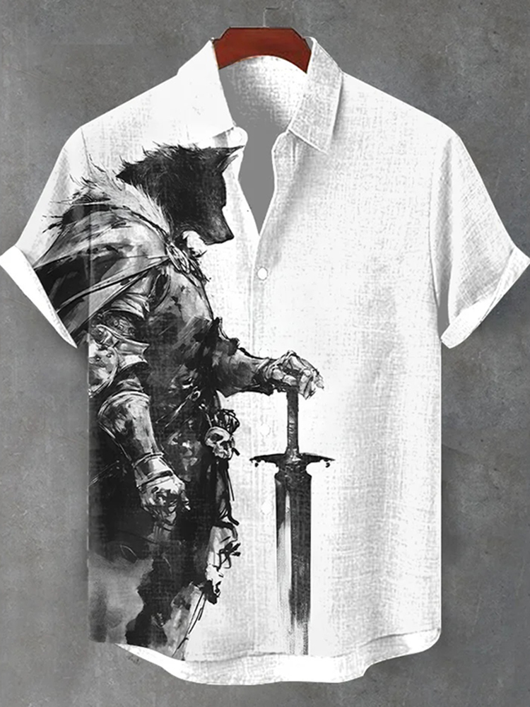Men's Vintage Art Werewolf Knight Print Casual Shirt