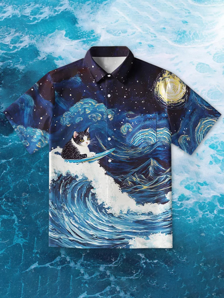 Men's The Great Wave Off Cat Button-up Shirt