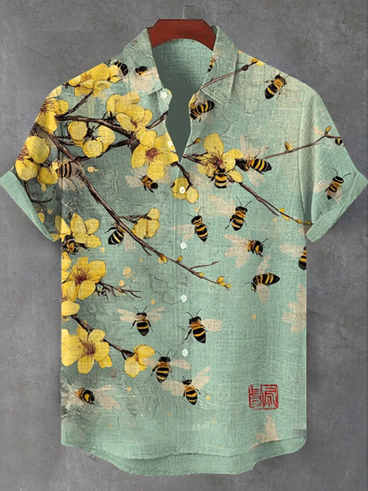 Men's A Bunch Of Bees Surround Yellow Plum Blossoms Art Print Casual Shirt