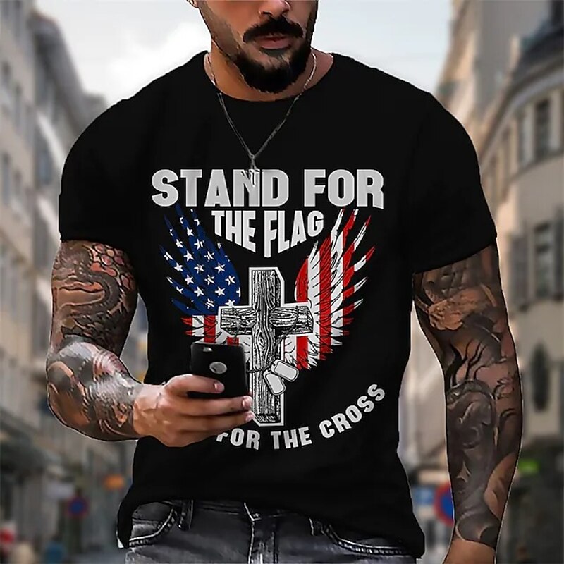 Men's American Us Flag 1776 Veterans Day Print T-shirt