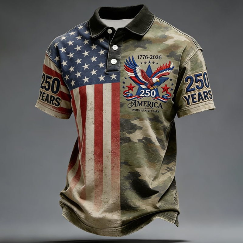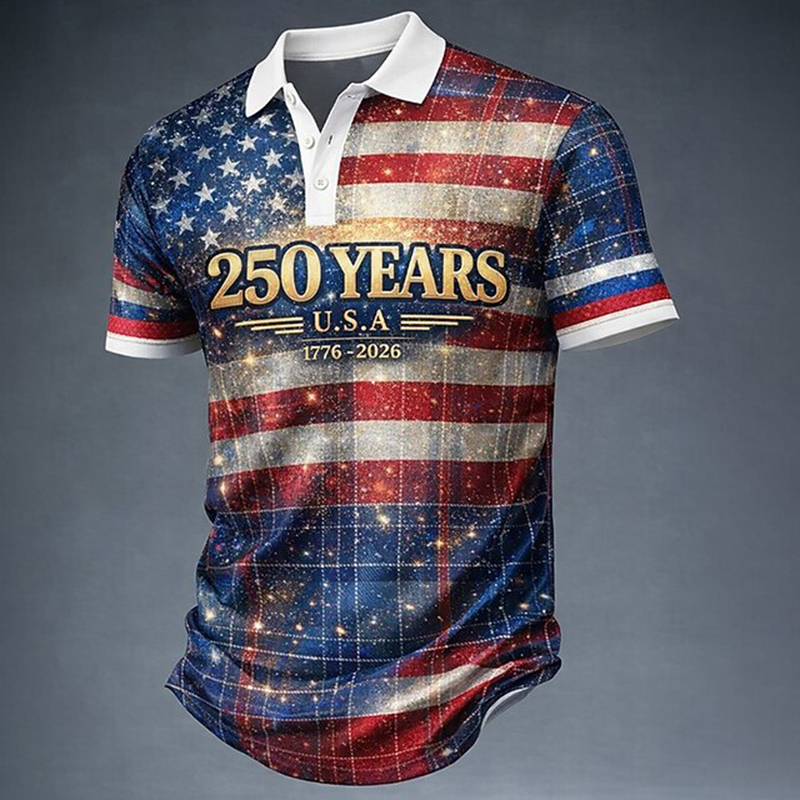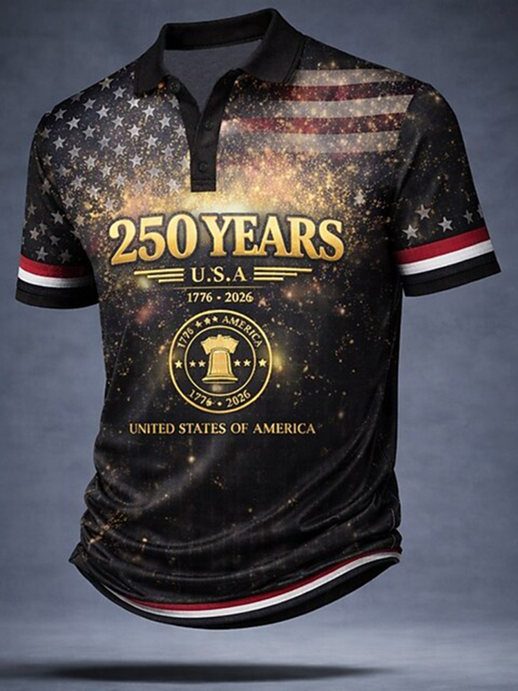 Men's Casual America's 250th Anniversary Print Polo Shirt