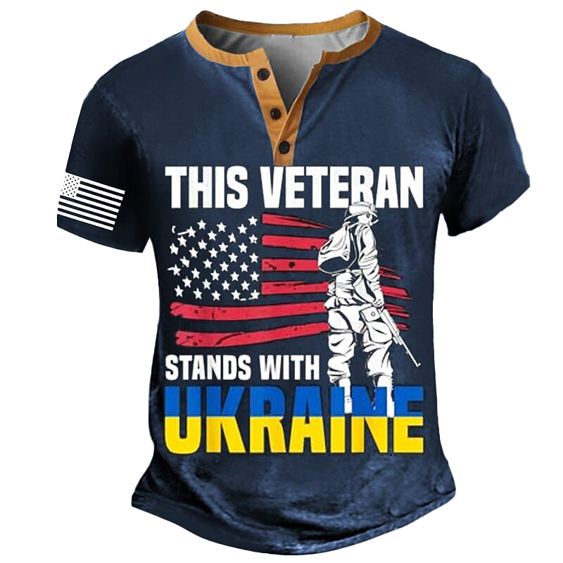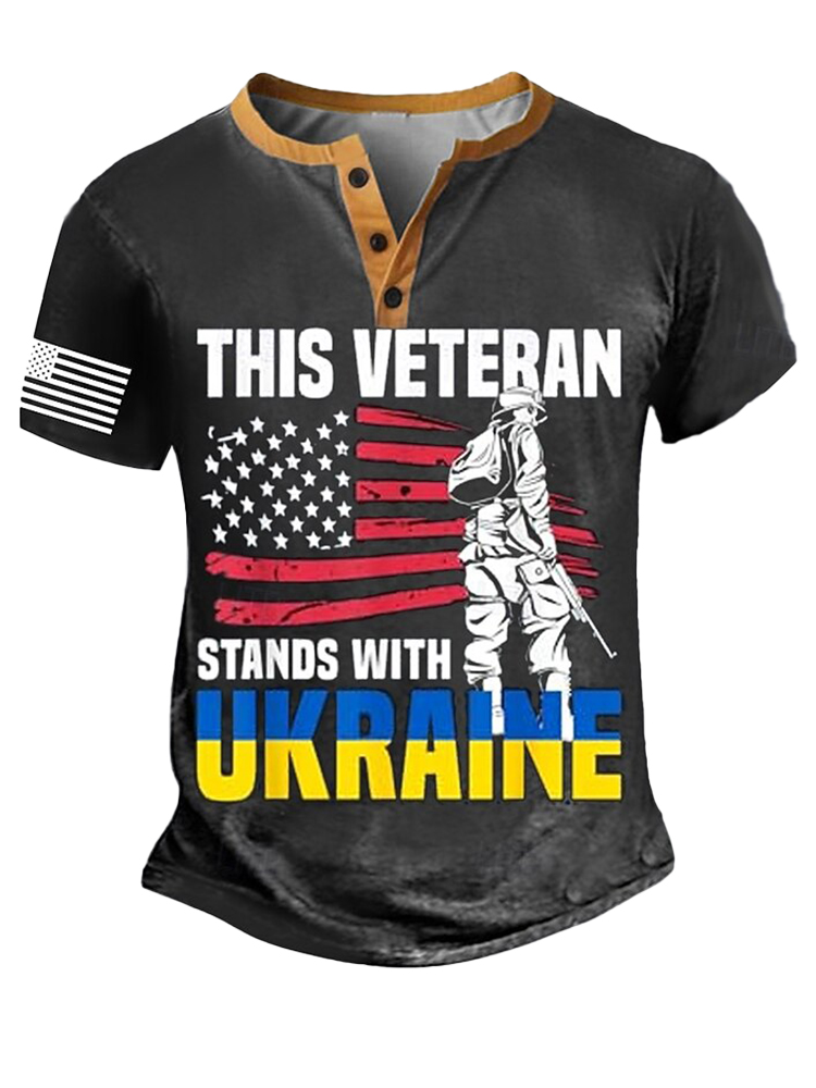 Men's Casual America's 250th Anniversary Veterans Day Pattern Henley T-shirt
