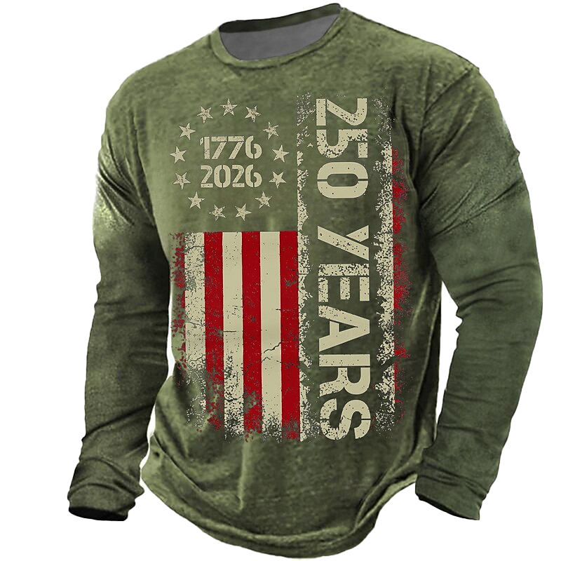 Men's Retro Us Flag Patriotic America's 250th Anniversary Long Sleeve Shirt