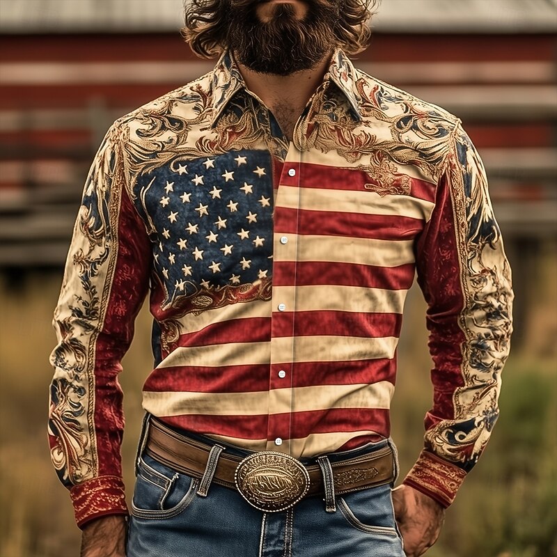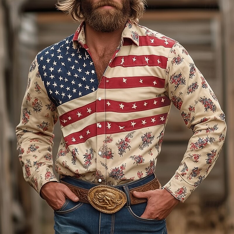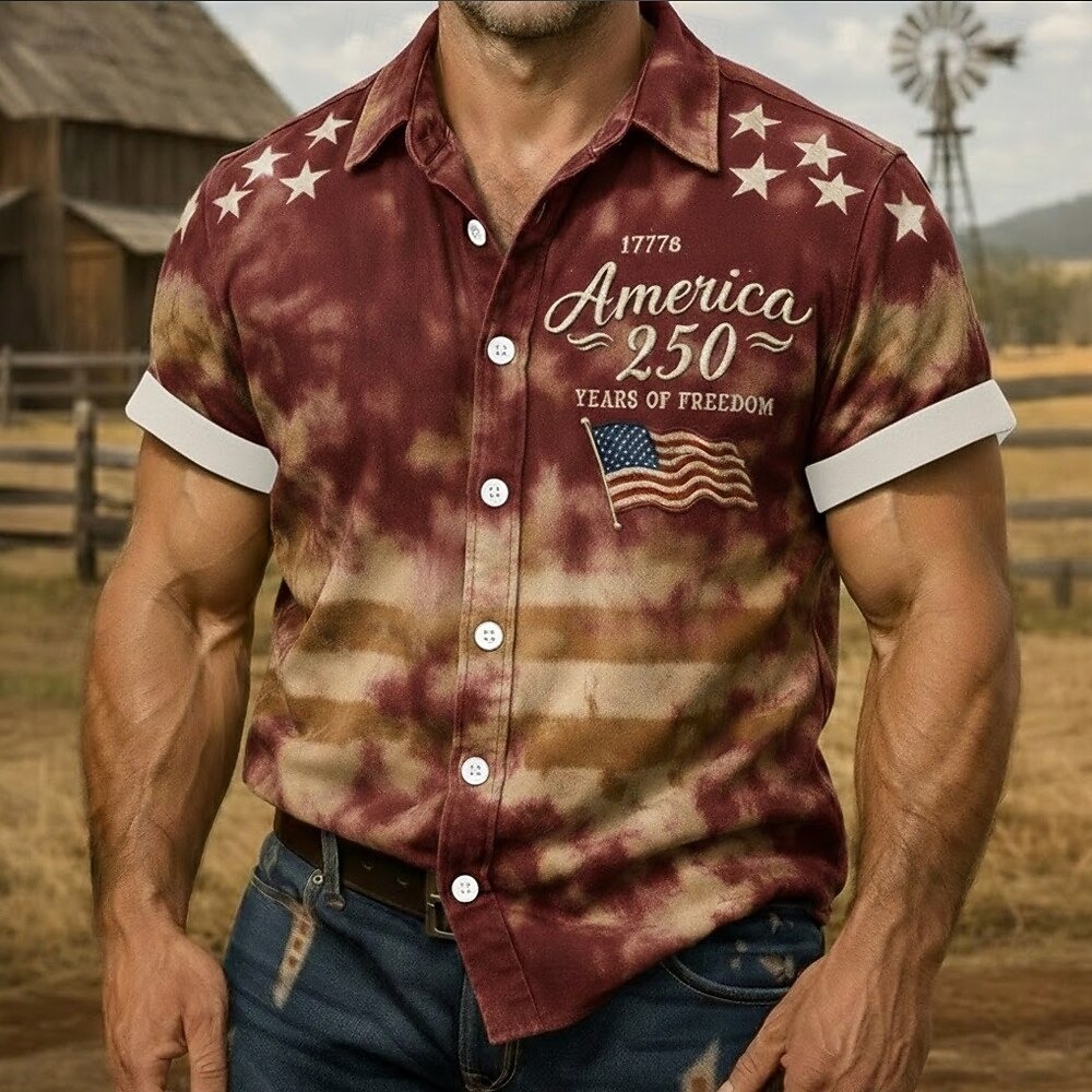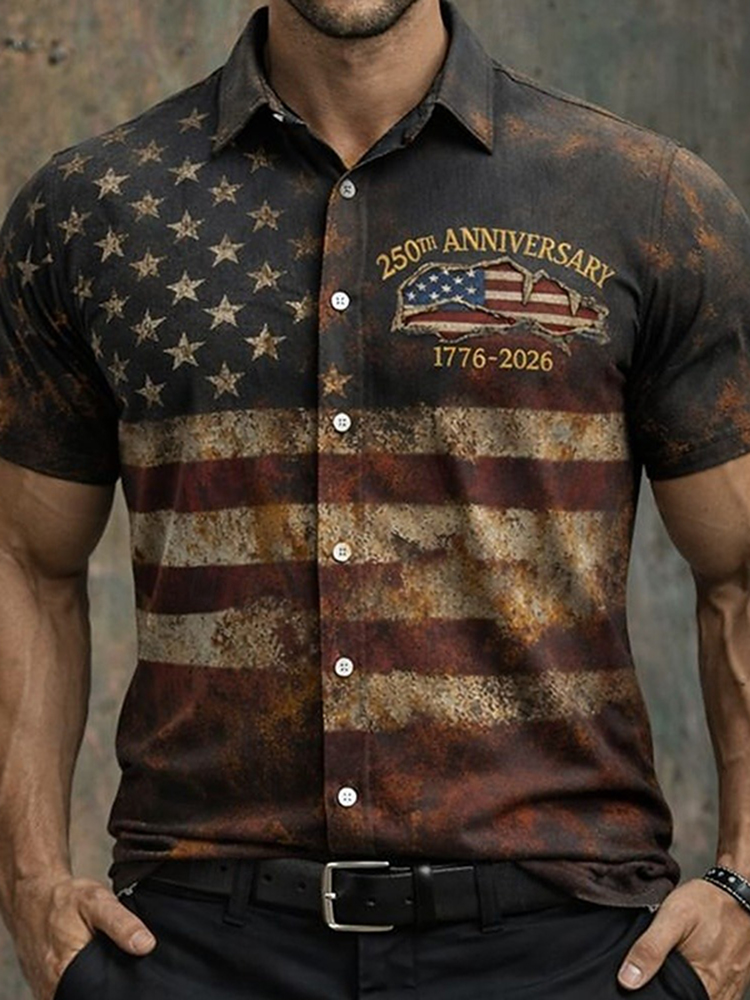Men's Vintage America's 250th Anniversary Print Button Up Shirt