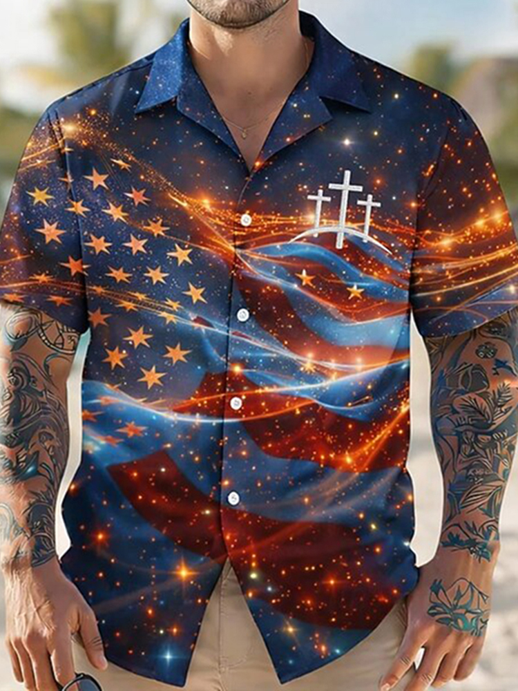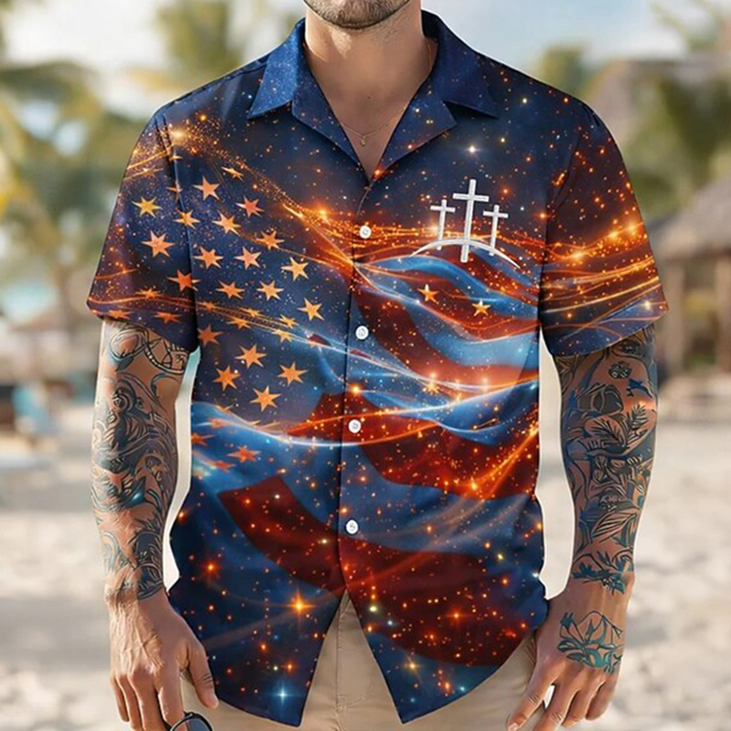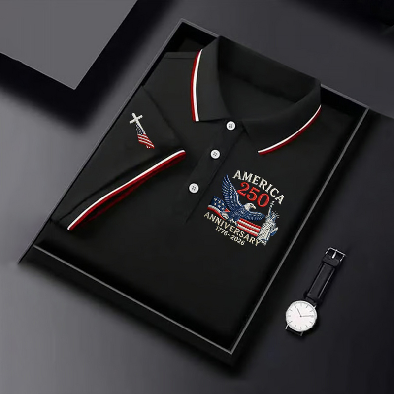 Men's Retro 250th Anniversary Of The United States Print Independence Day Cross Print Polo Shirt