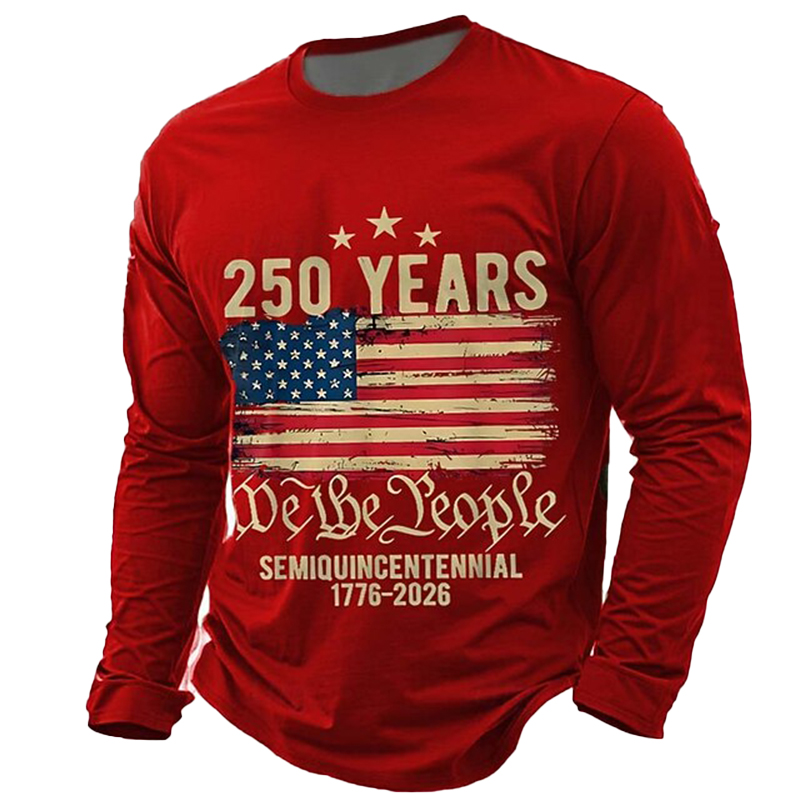 Men's Us Flag Patriotic America's 250th Anniversary Long Sleeve Shirt