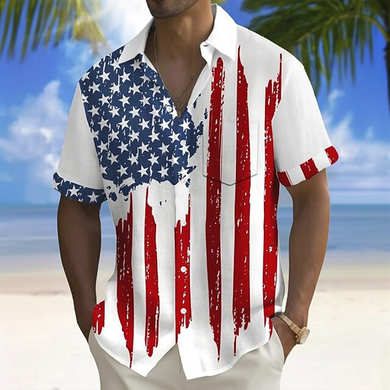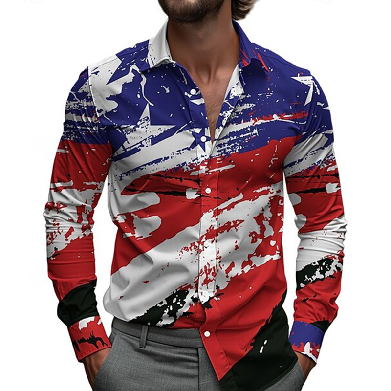 Men's Us Flag Abstract Liquid Art Button Up Shirt