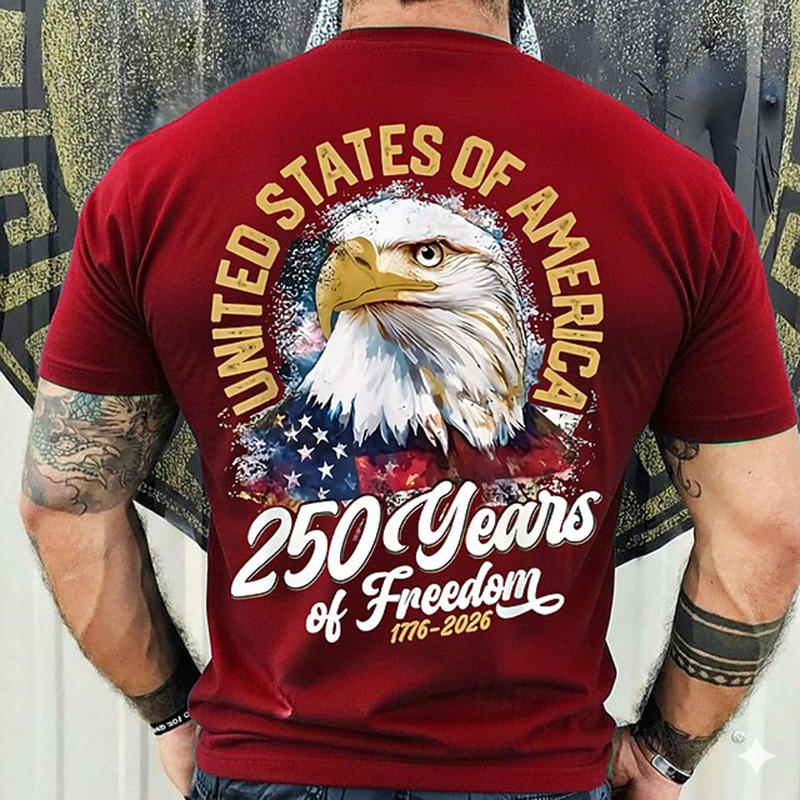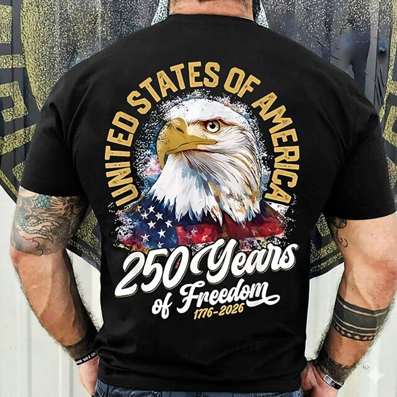 Men's Retro Us America 250 Year Anniversary Patriotic Print T Shirt