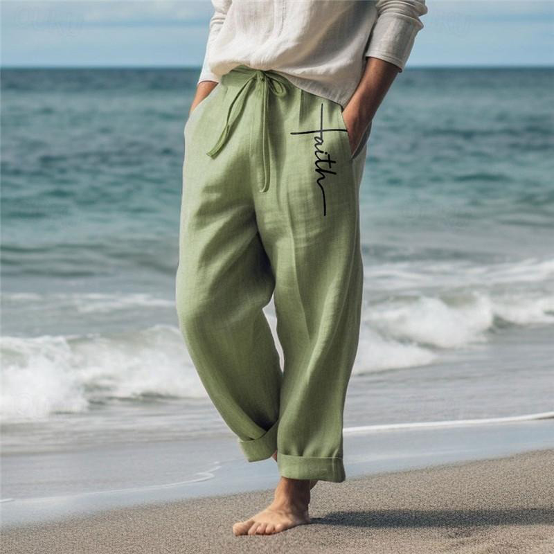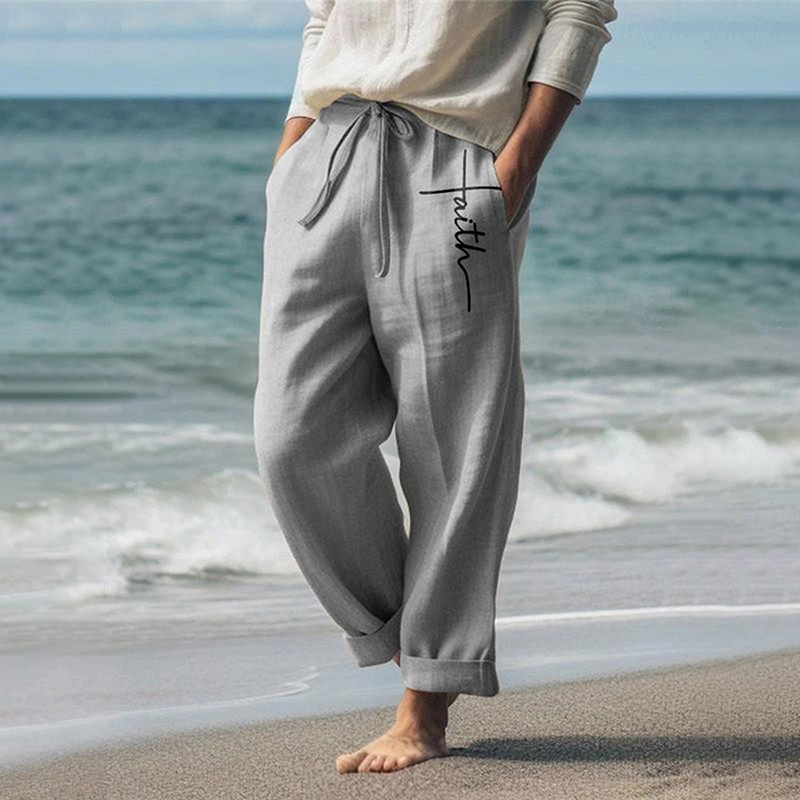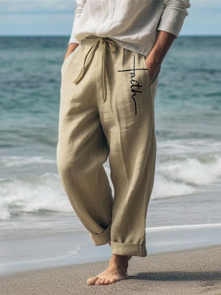 Men's Vintage Faith Cross With Jesus Art Loose And Comfortable Cotton And Linen Pants