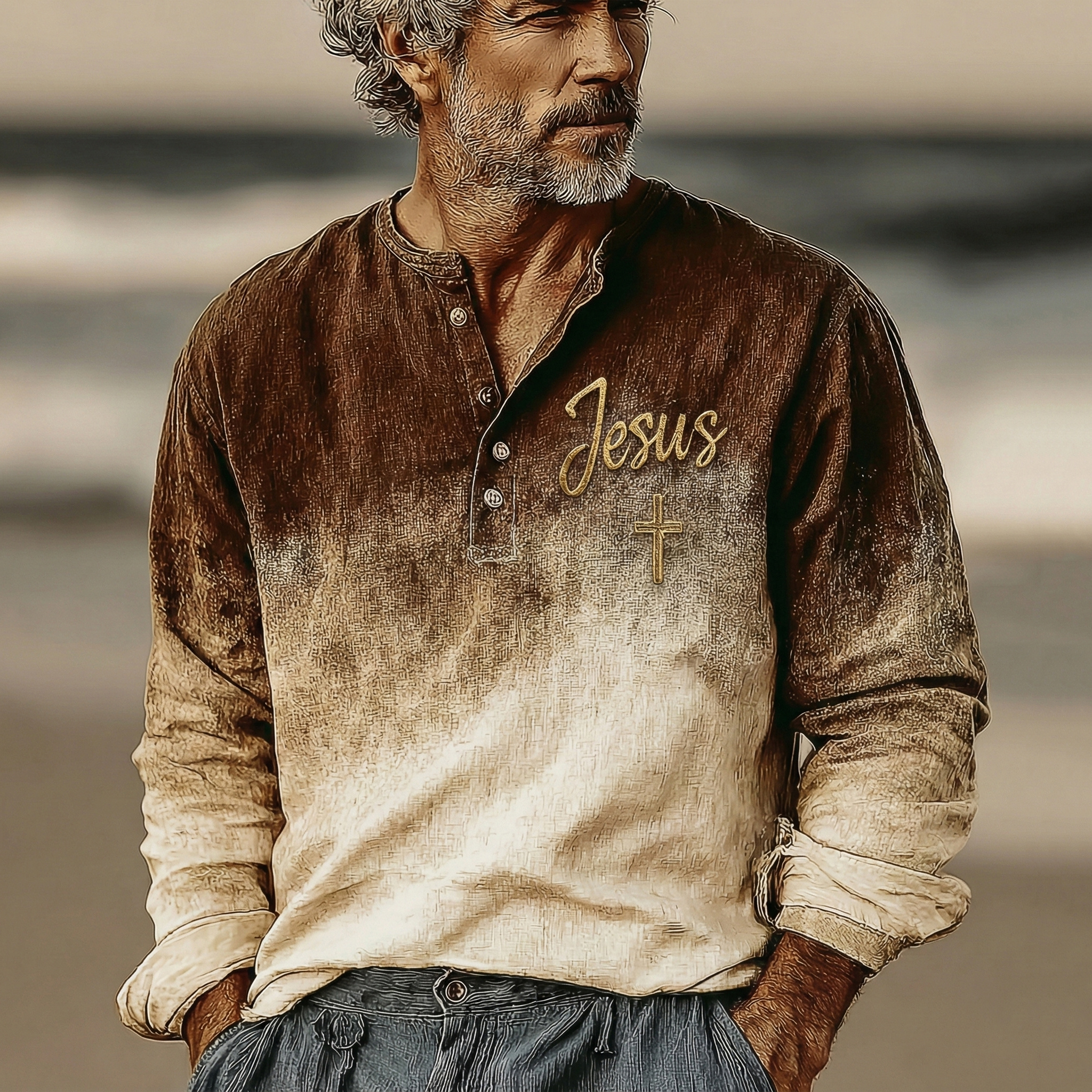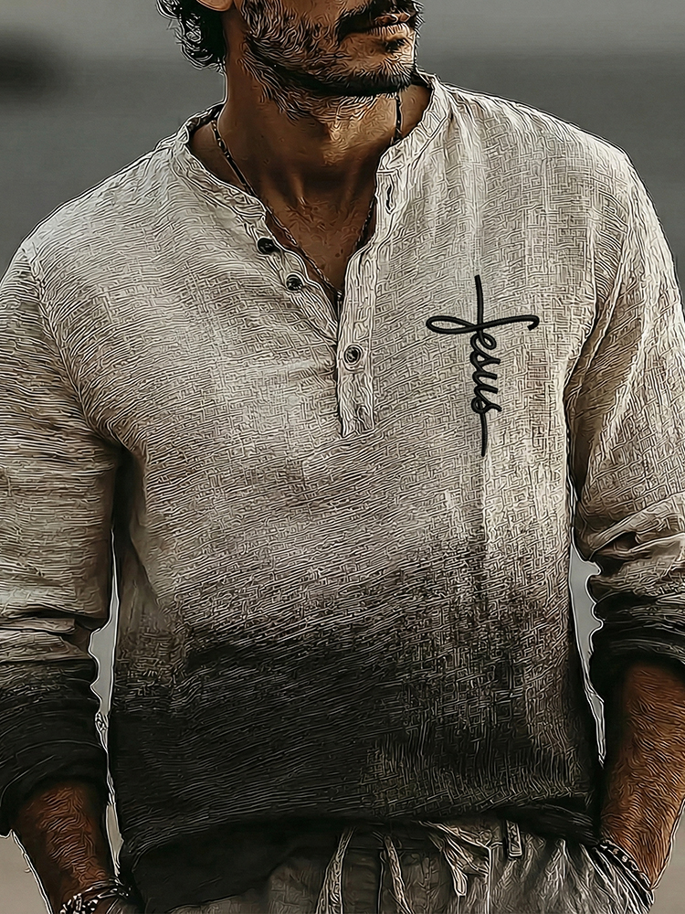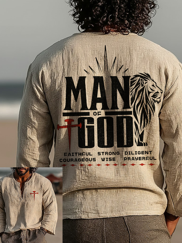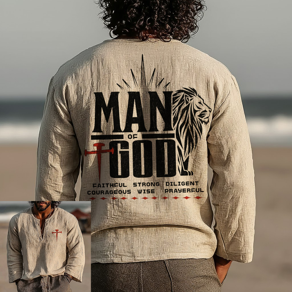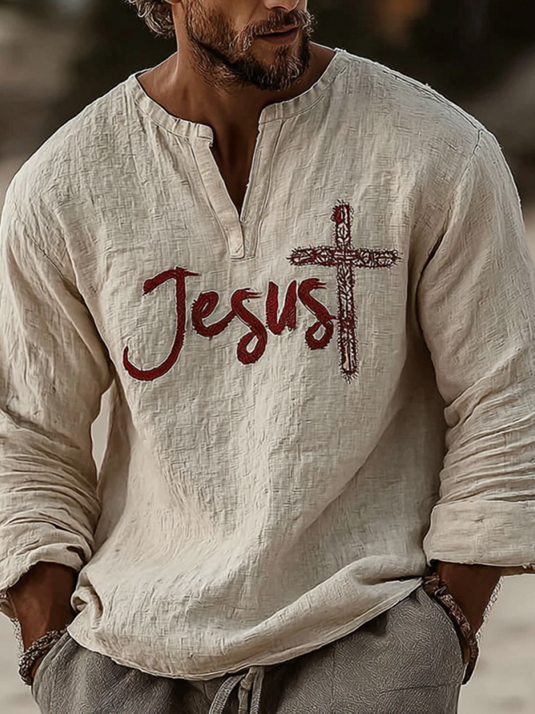Men's Vintage Man Of God Faithful Art Loose And Comfortable Cotton And Linen Long-sleeved Shirt