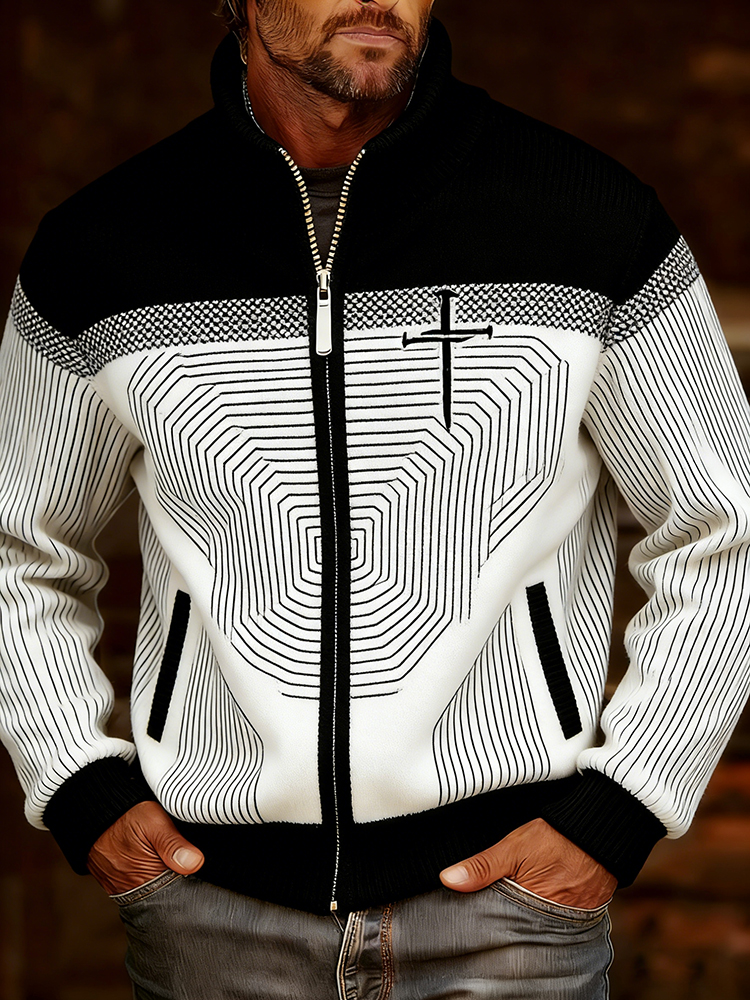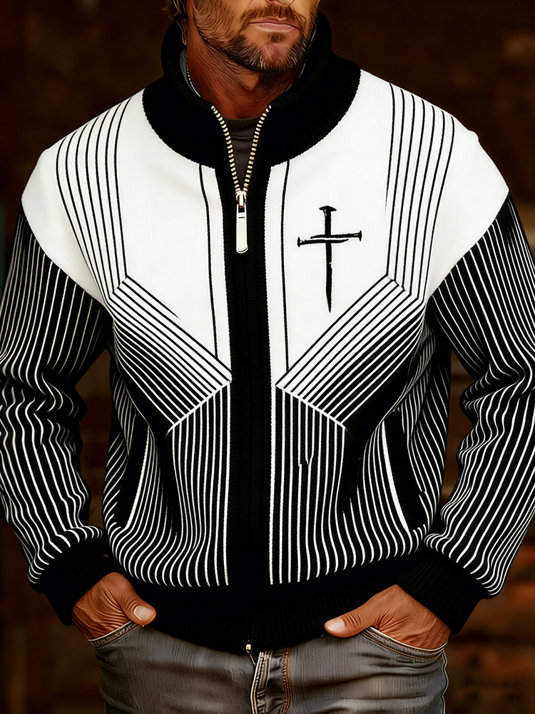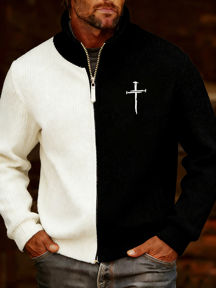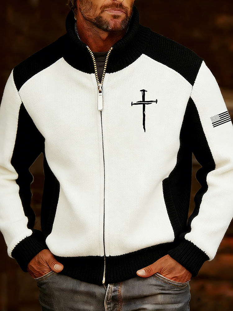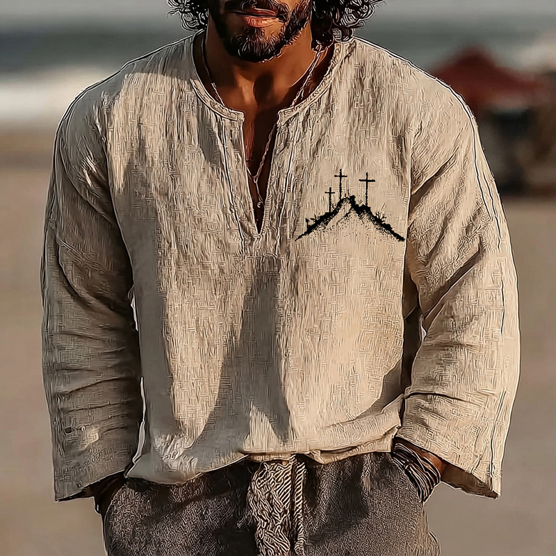 Men's Vintage Cross Faith With Jesus Art Loose And Comfortable Cotton And Linen Long-sleeved Shirt
