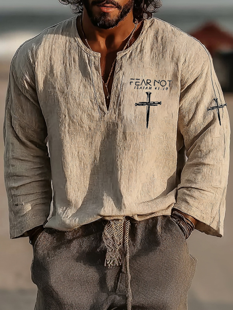 Men's Vintage Fear Not Isaiah 41:10 Art Loose And Comfortable Cotton And Linen Long-sleeved Shirt