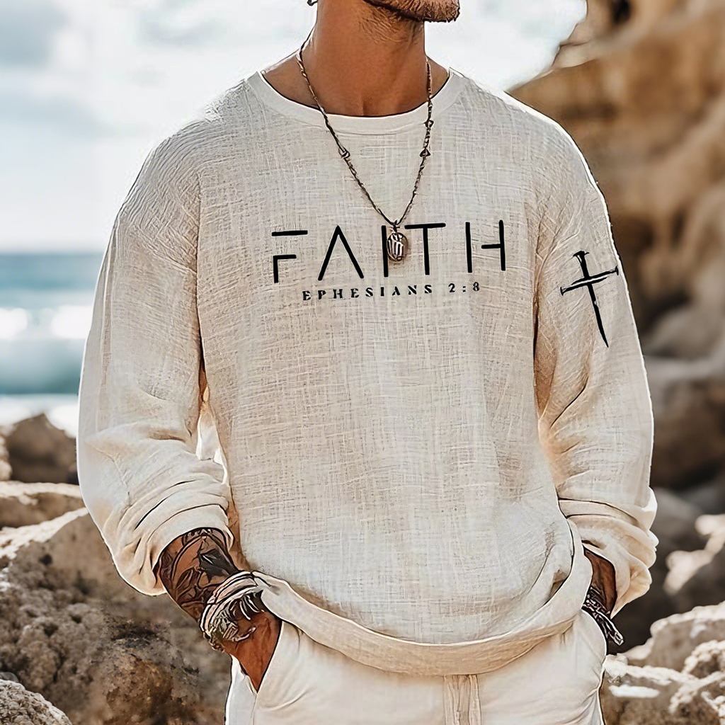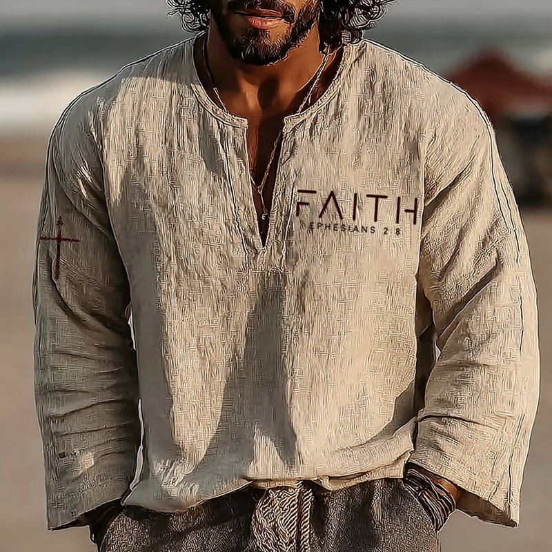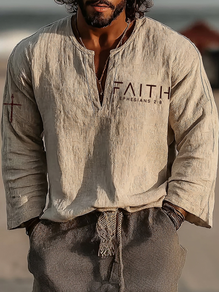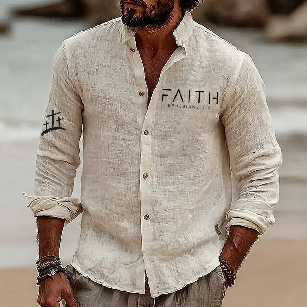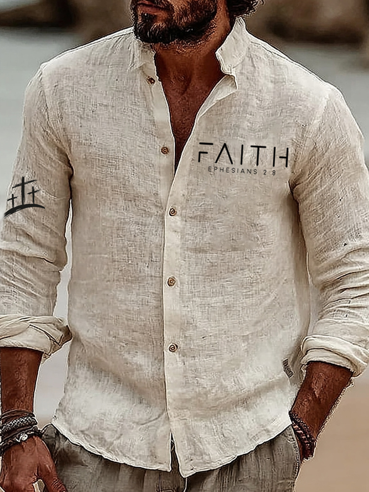 Men's Vintage Faith Ephesians 2:8 Art Loose And Comfortable Cotton And Linen Long-sleeved Shirt