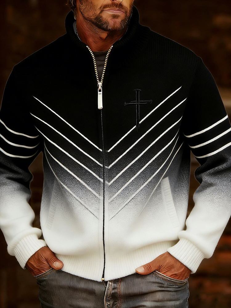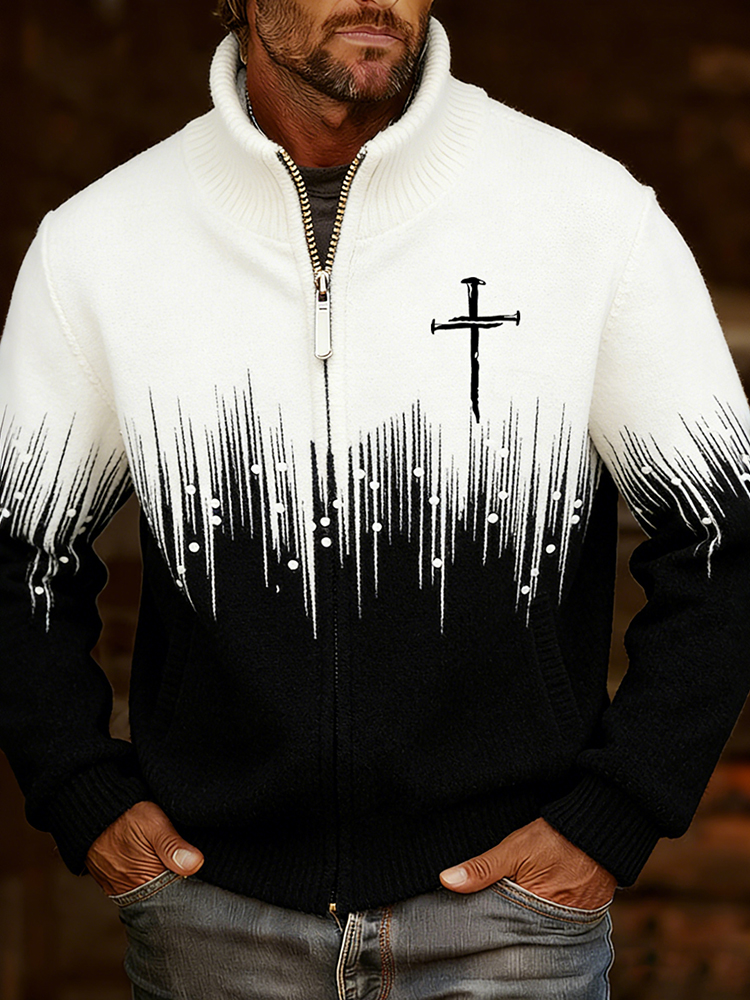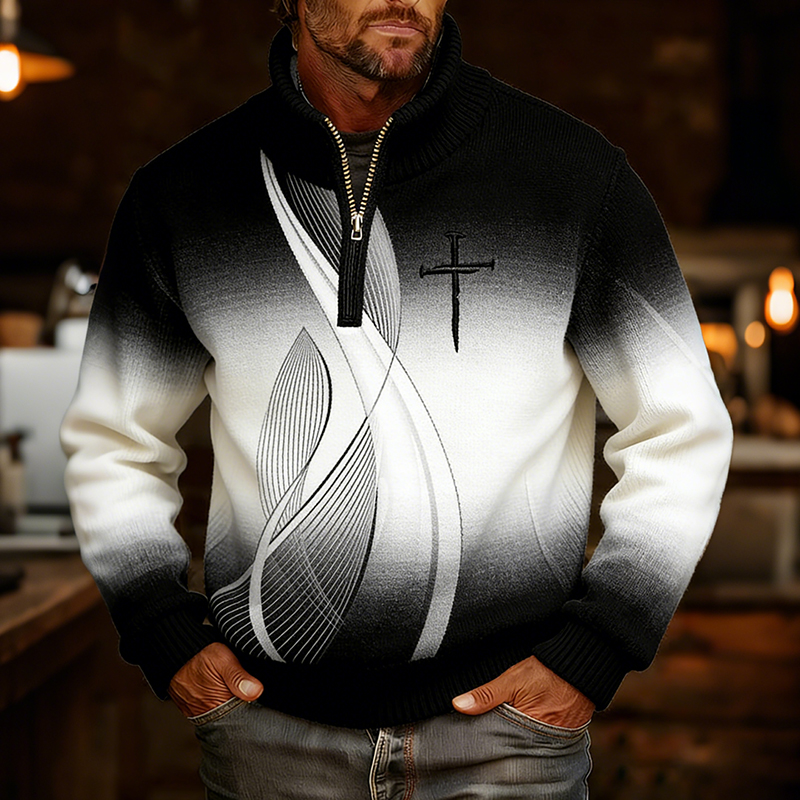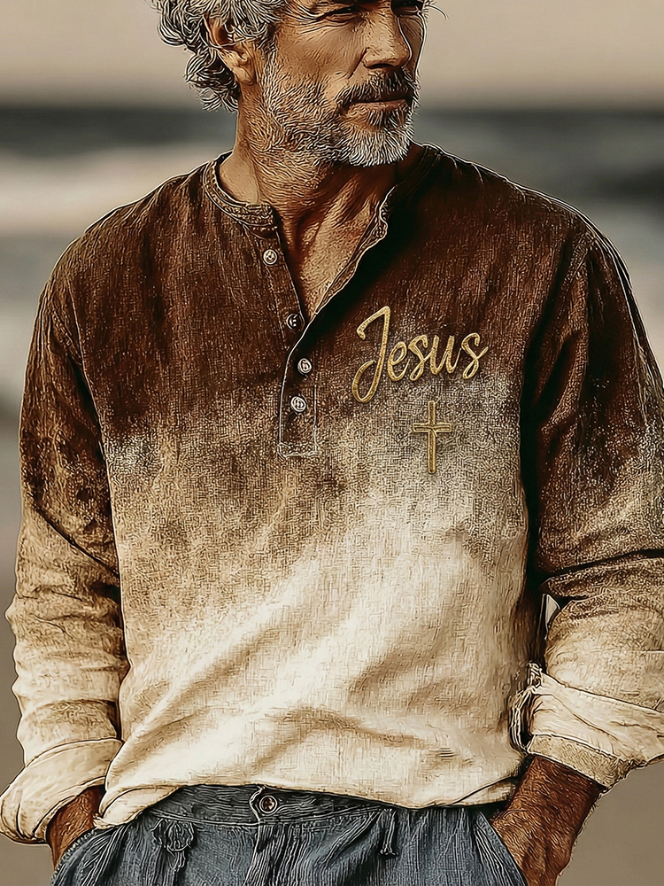 Men's Vintage Faith Cross In Gradient Art Loose And Comfortable Cotton And Linen Long-sleeved Shirt