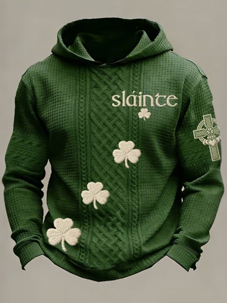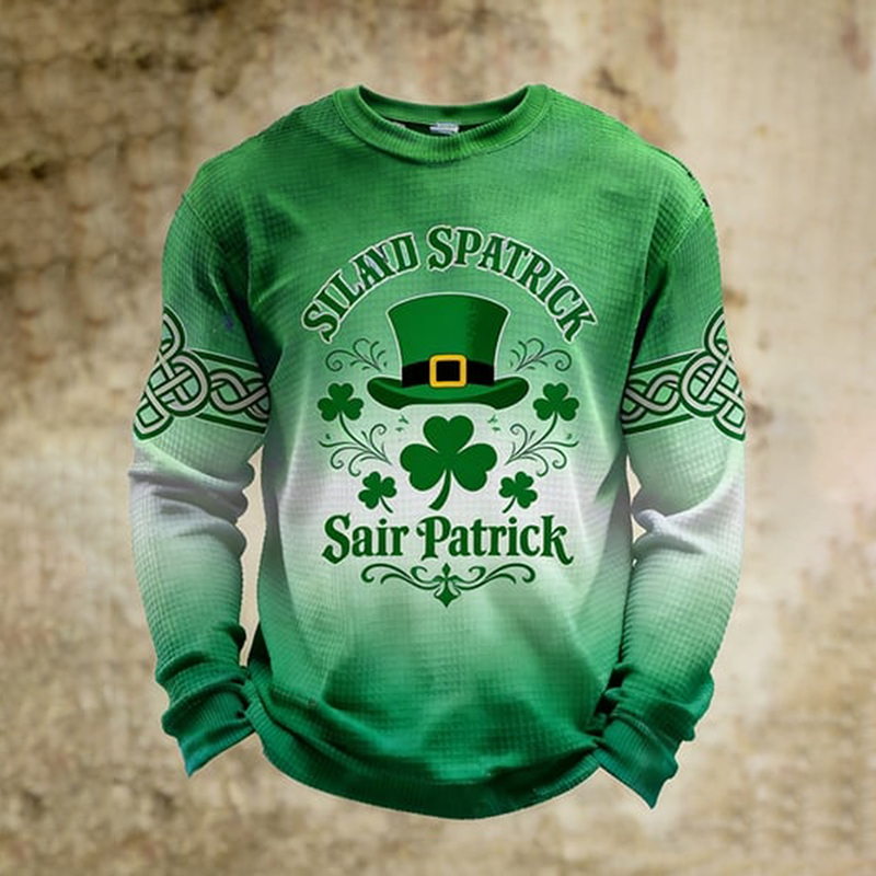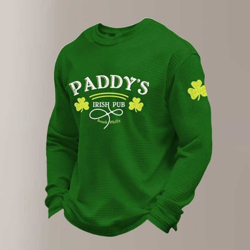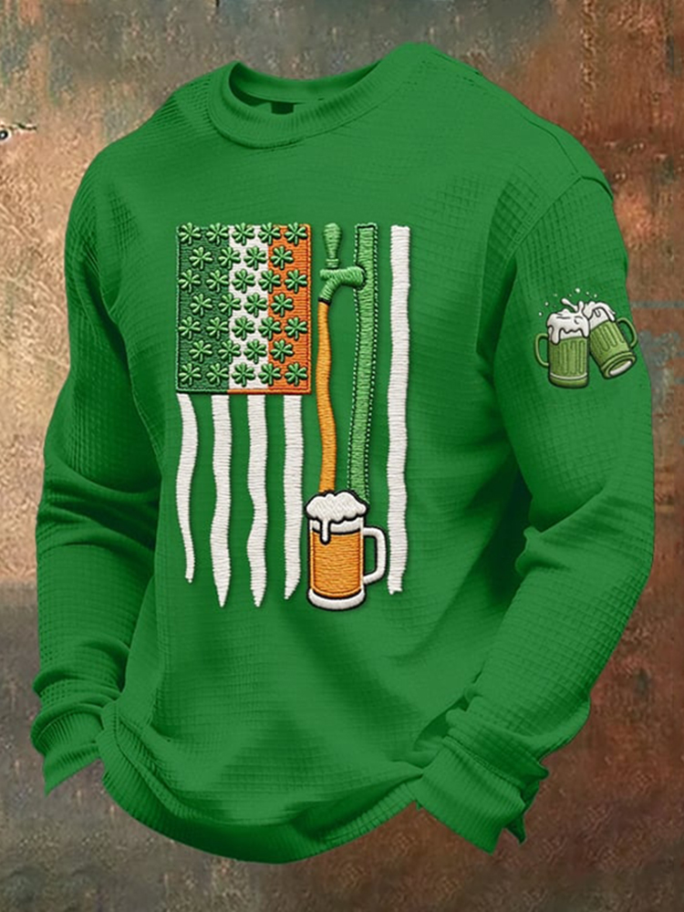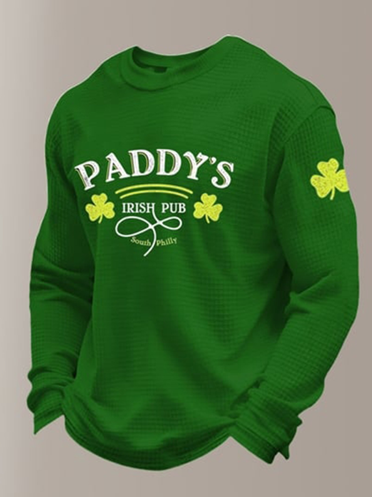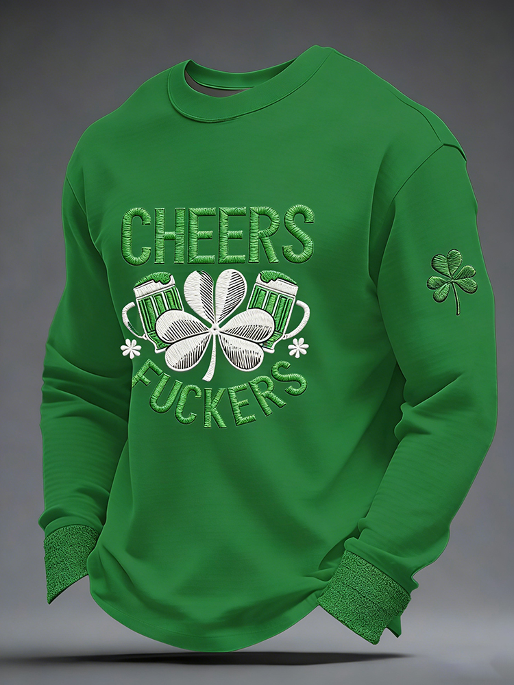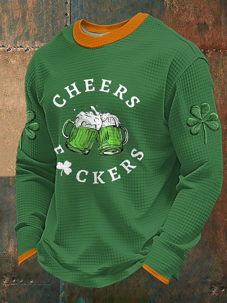 Men's Funny St Patrick's Day Cheers F*ckers Green Beer Shamrock Print Waffle Sweatshirt