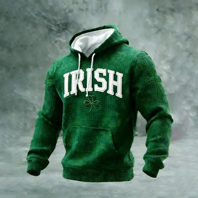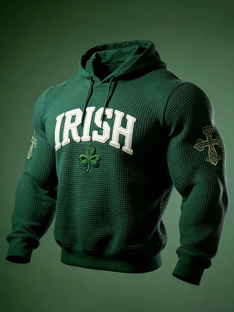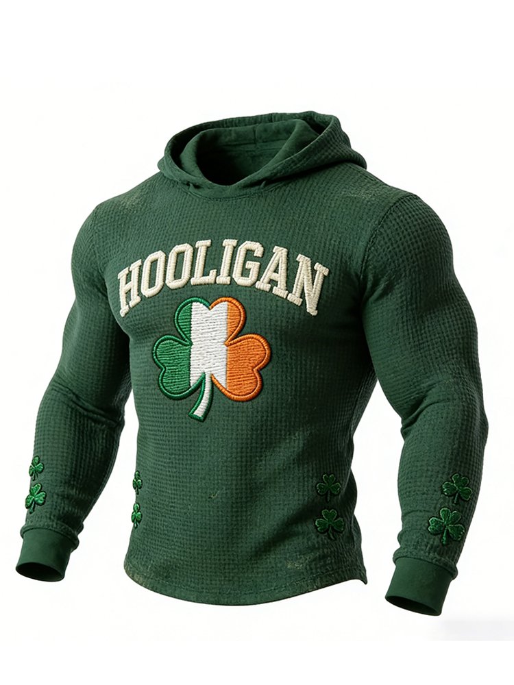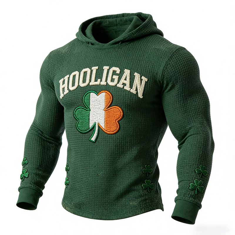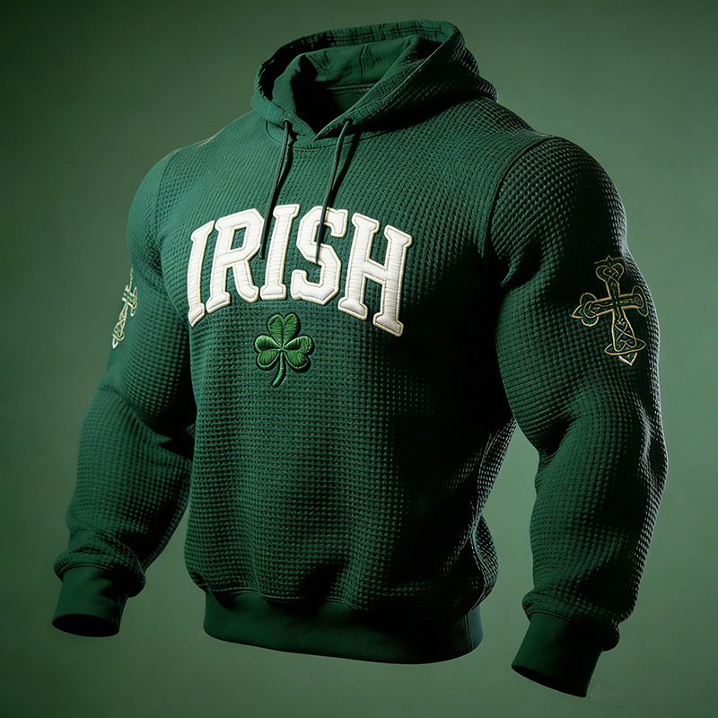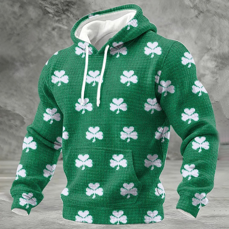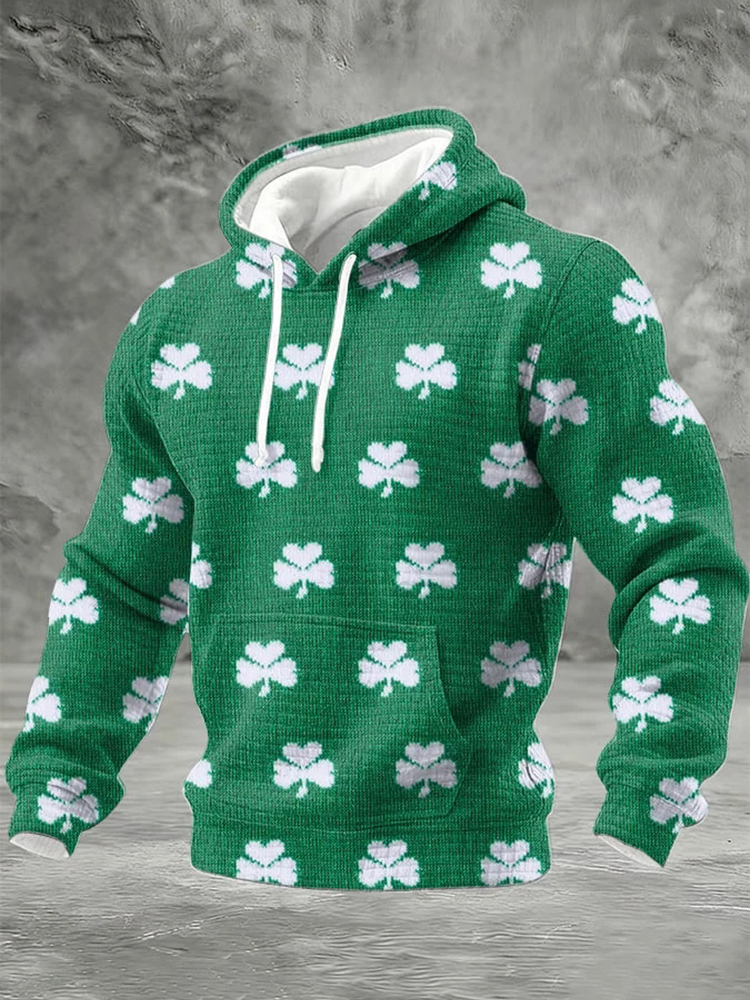 Men's Funny St Patrick's Day Cheers F*ckers Green Beer Shamrock Print Waffle Sweatshirt