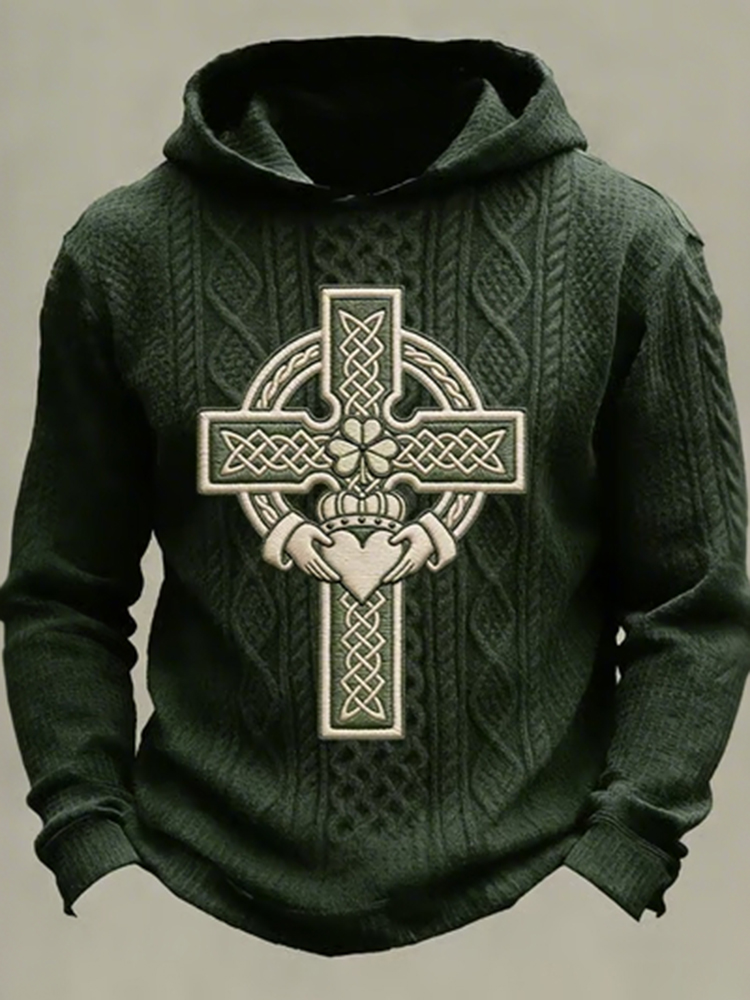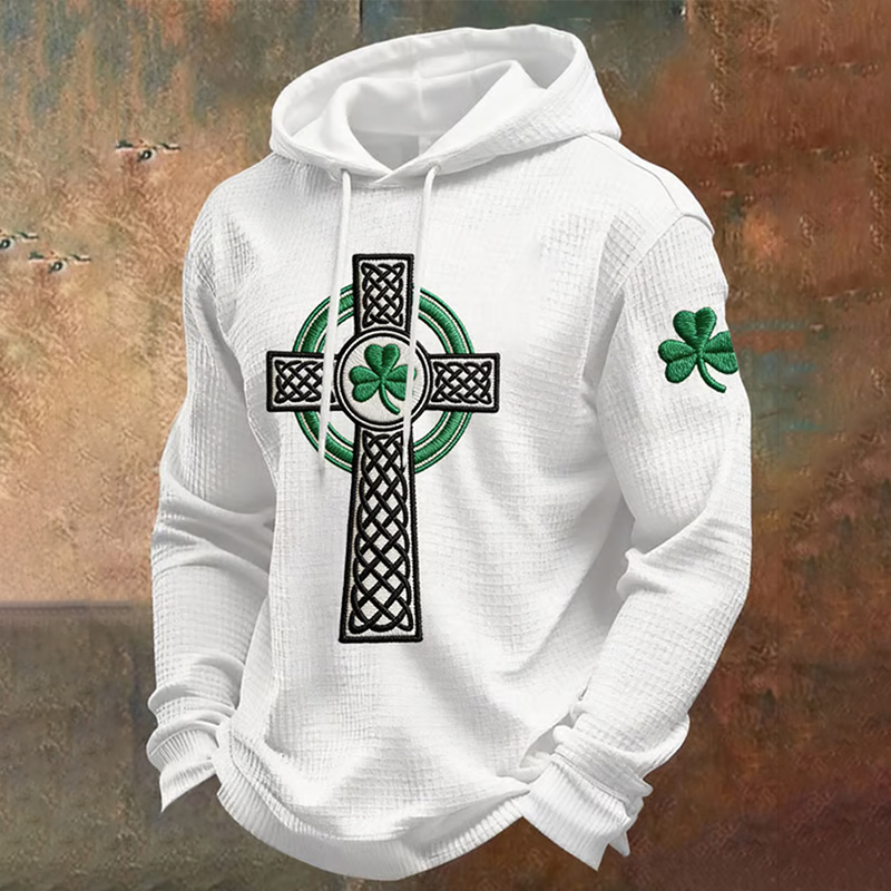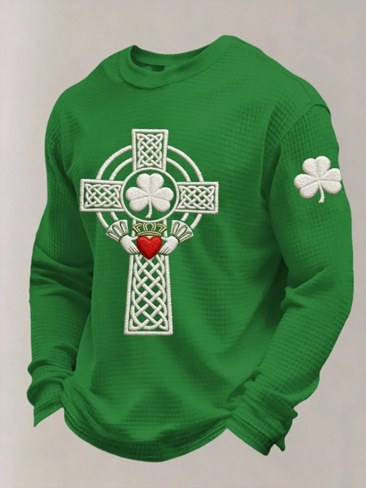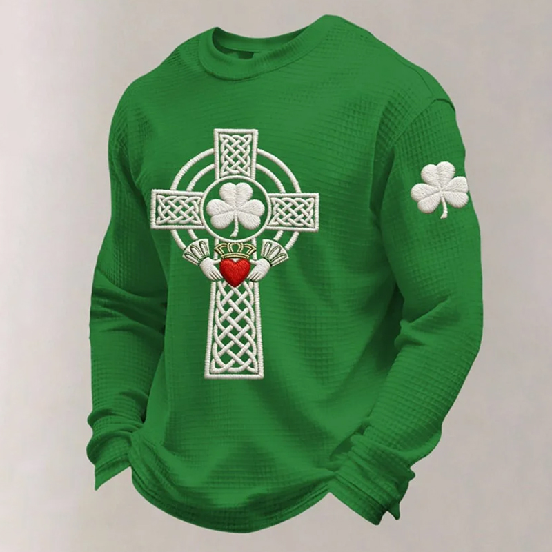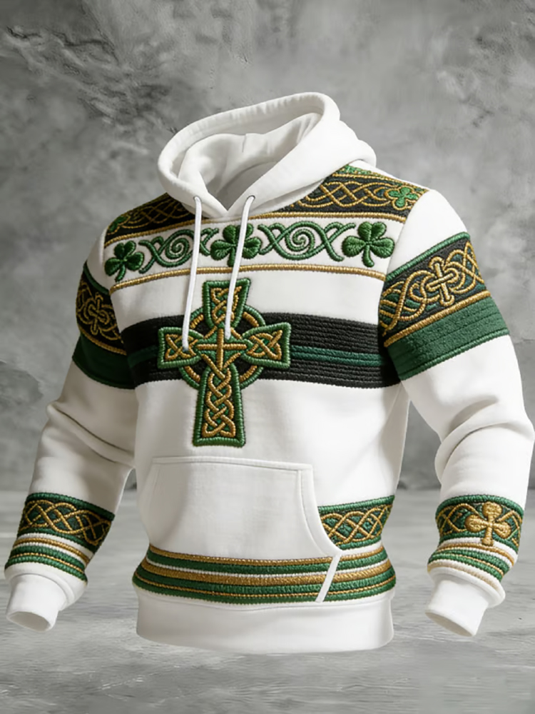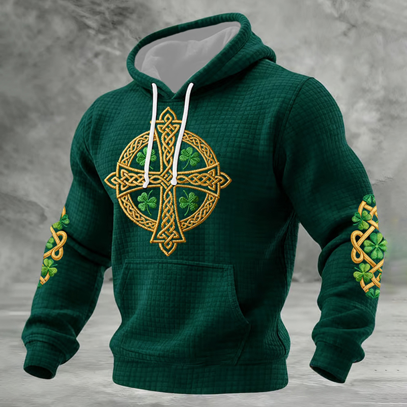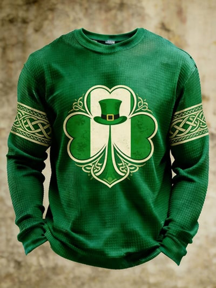 Men's St Patrick's Day Shamrock With Celtic Knot Cross Art Checkered Sweatshirt