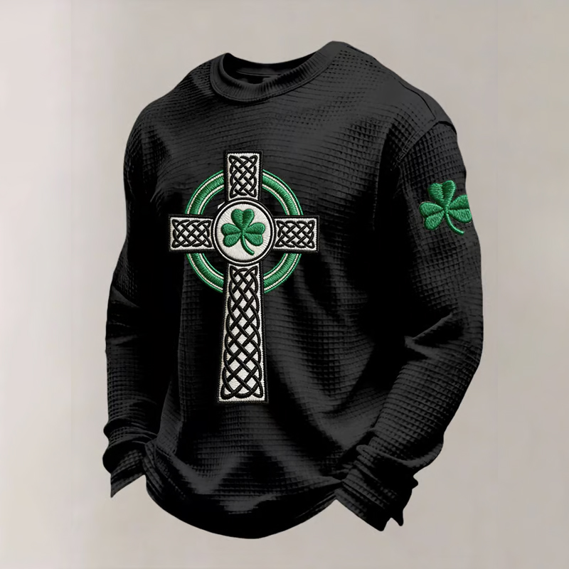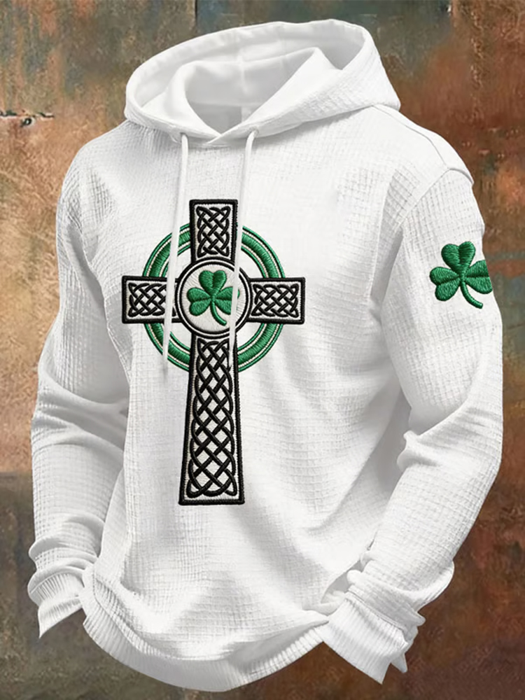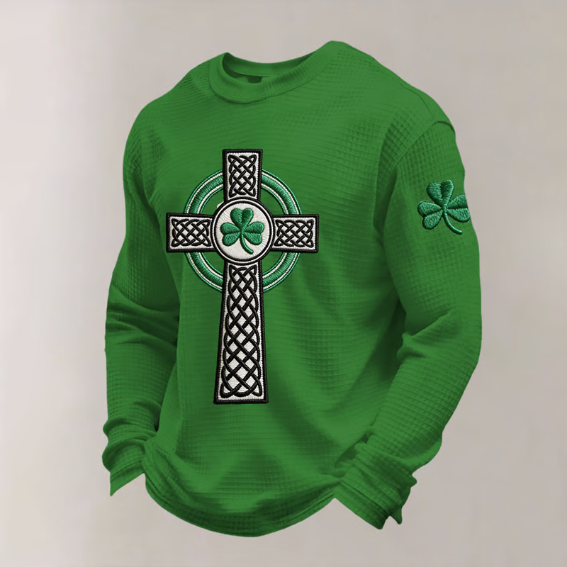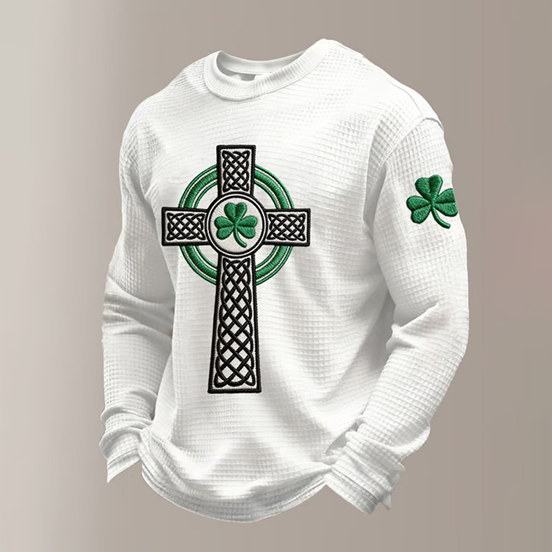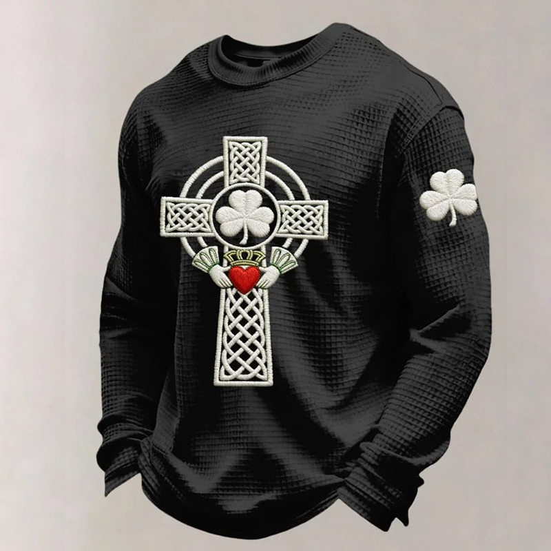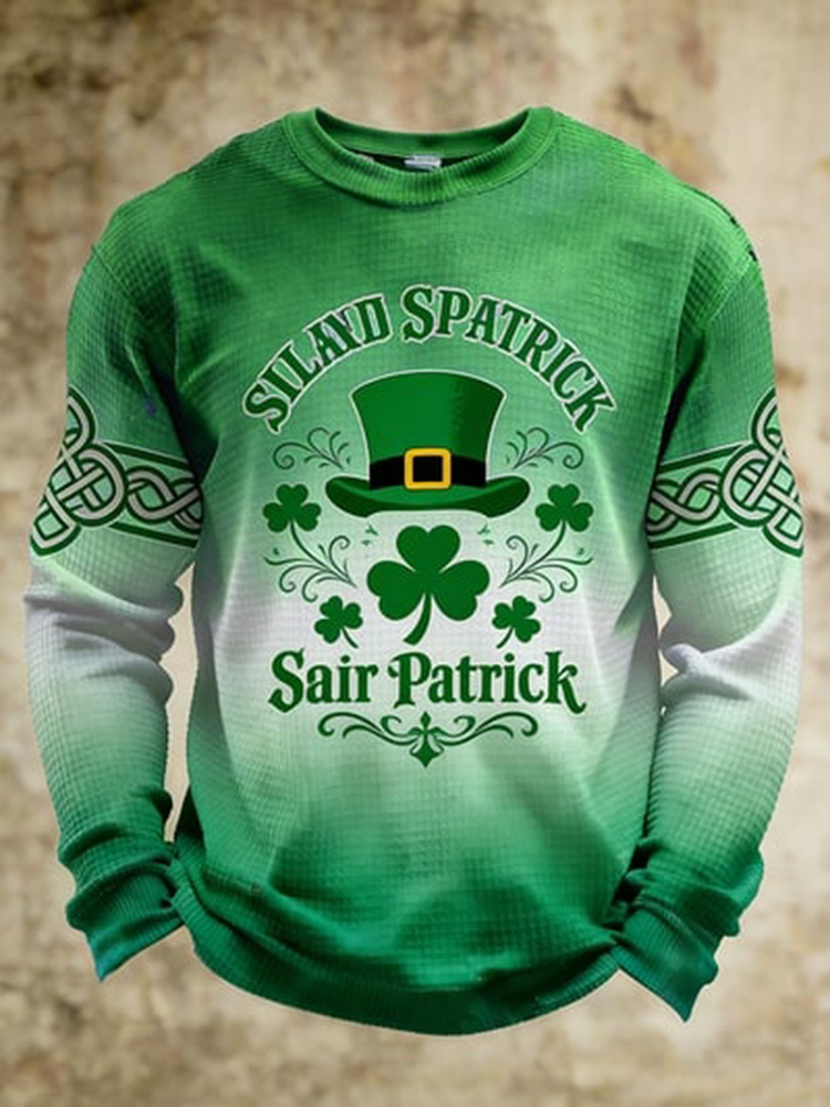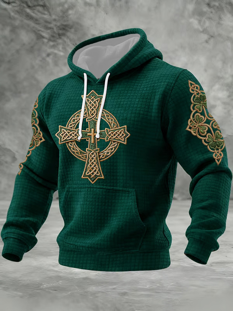 Men's St Patrick's Day Shamrock With Celtic Knot Cross Art Checkered Sweatshirt