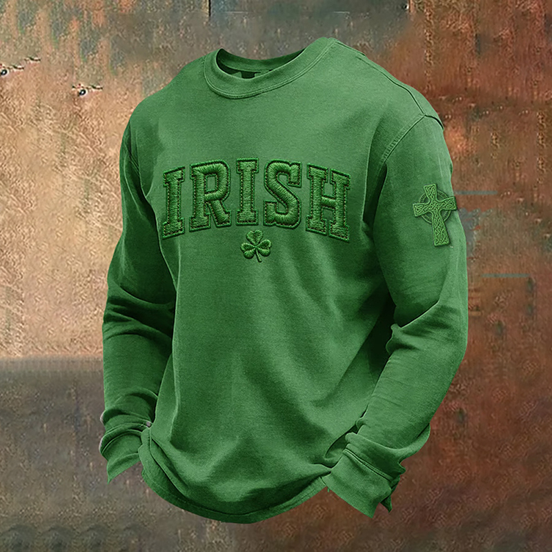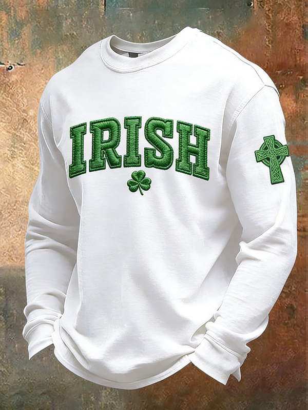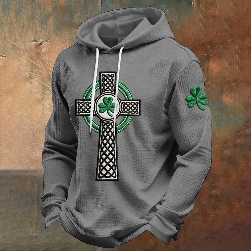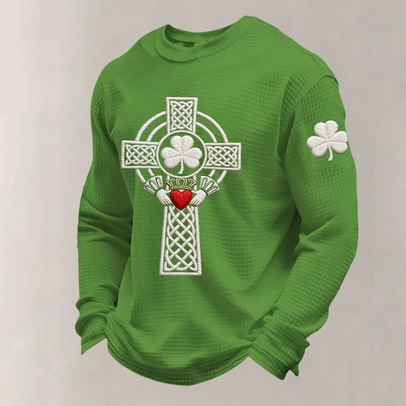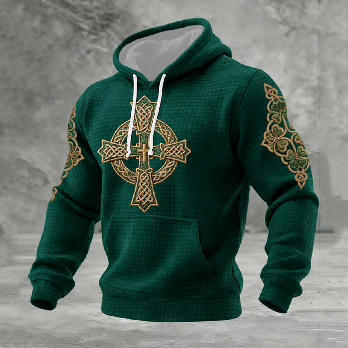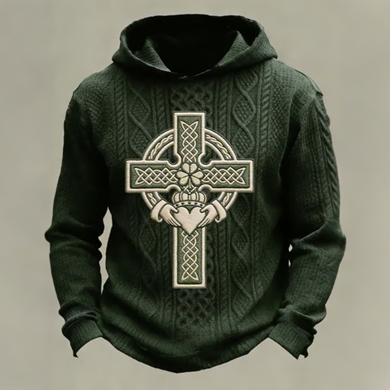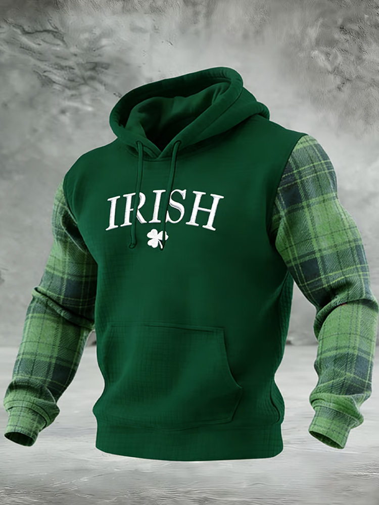 Men's St Patrick's Day Shamrock With Celtic Knot Cross Art Checkered Sweatshirt