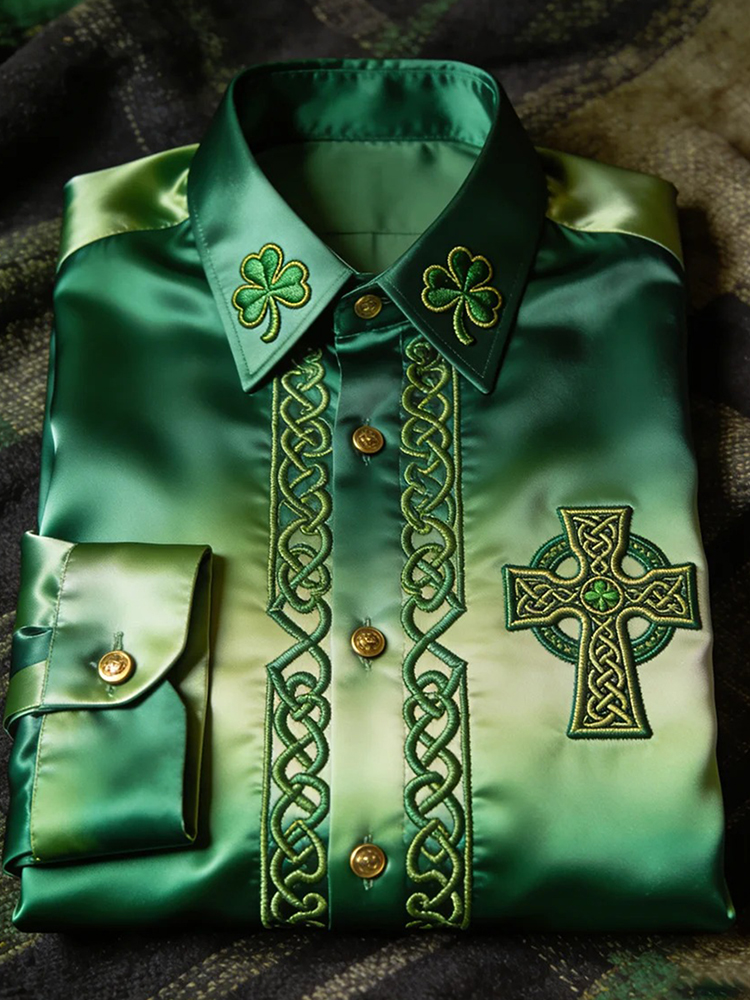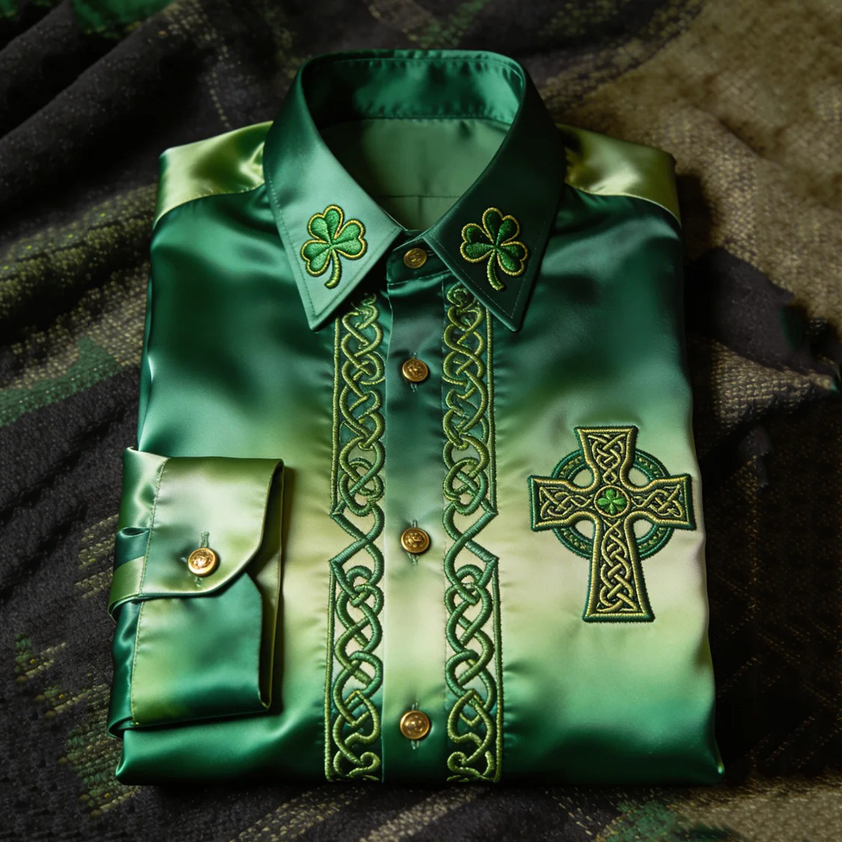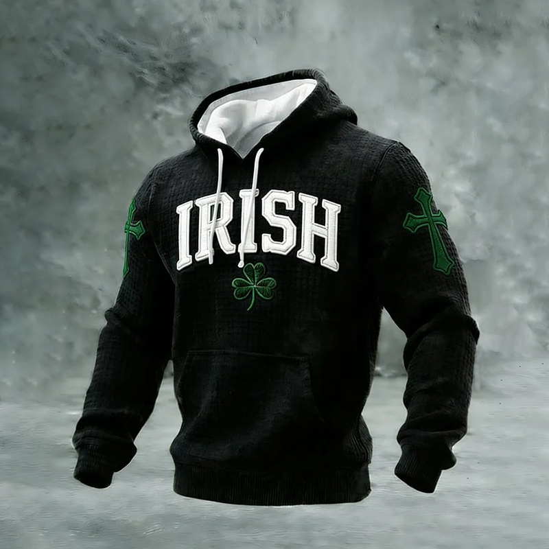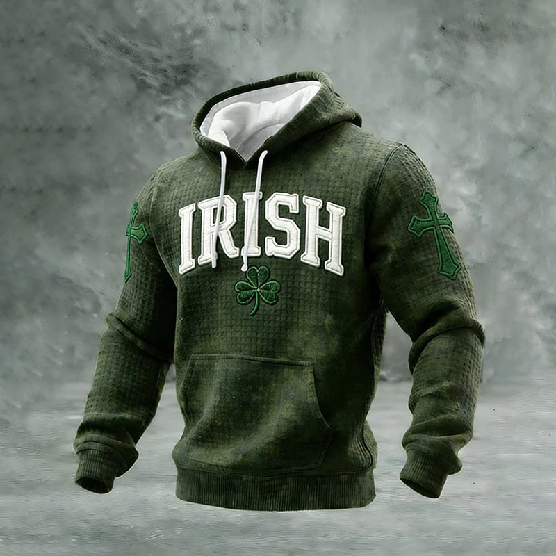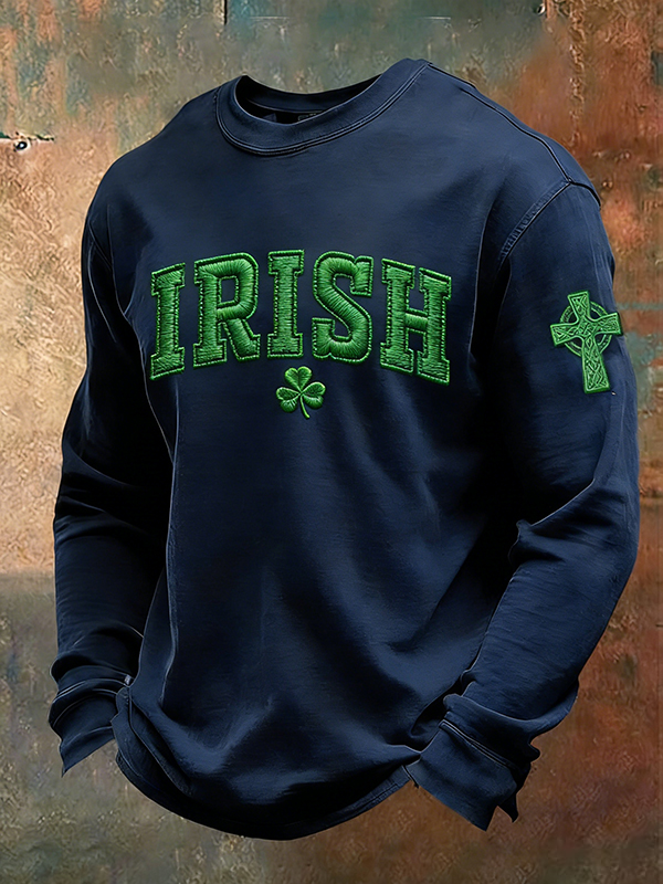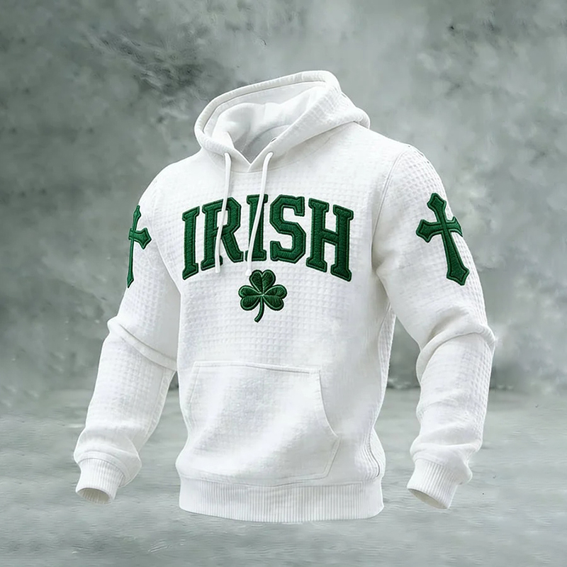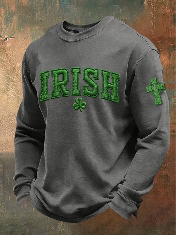 Men's St Patrick's Day Shamrock With Celtic Knot Cross Art Checkered Sweatshirt