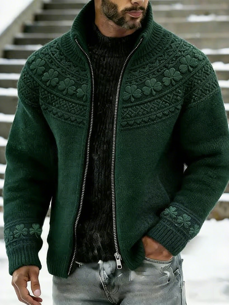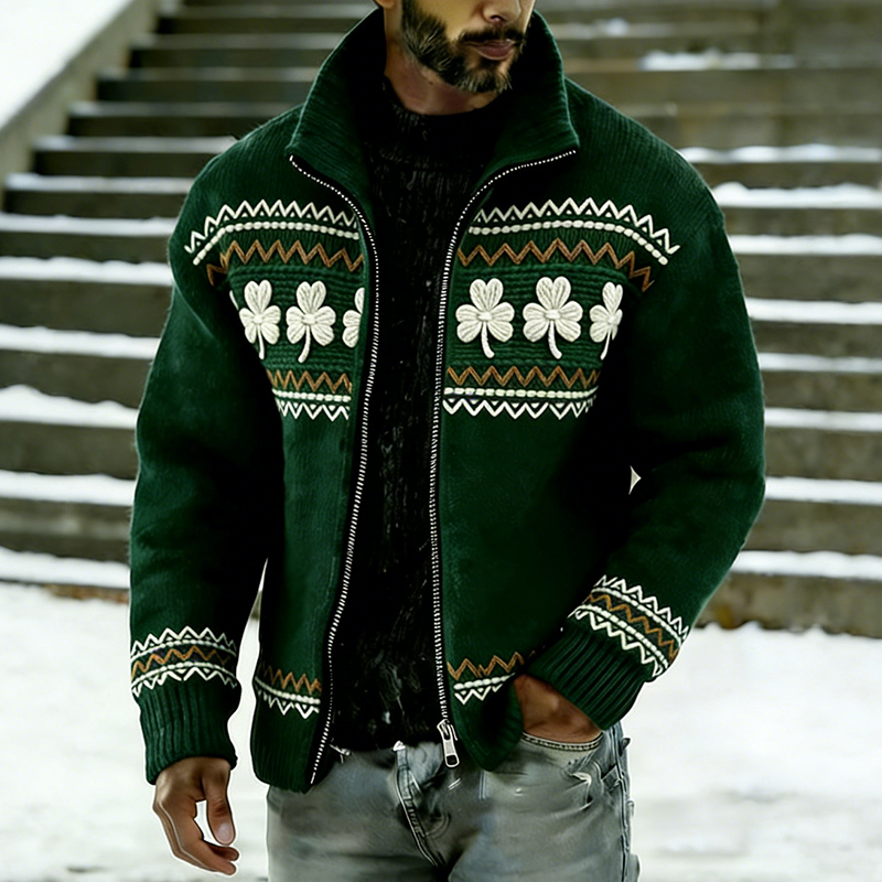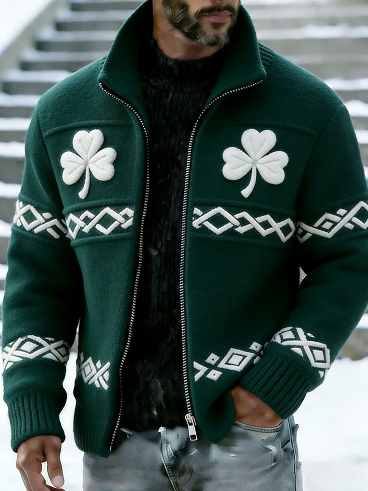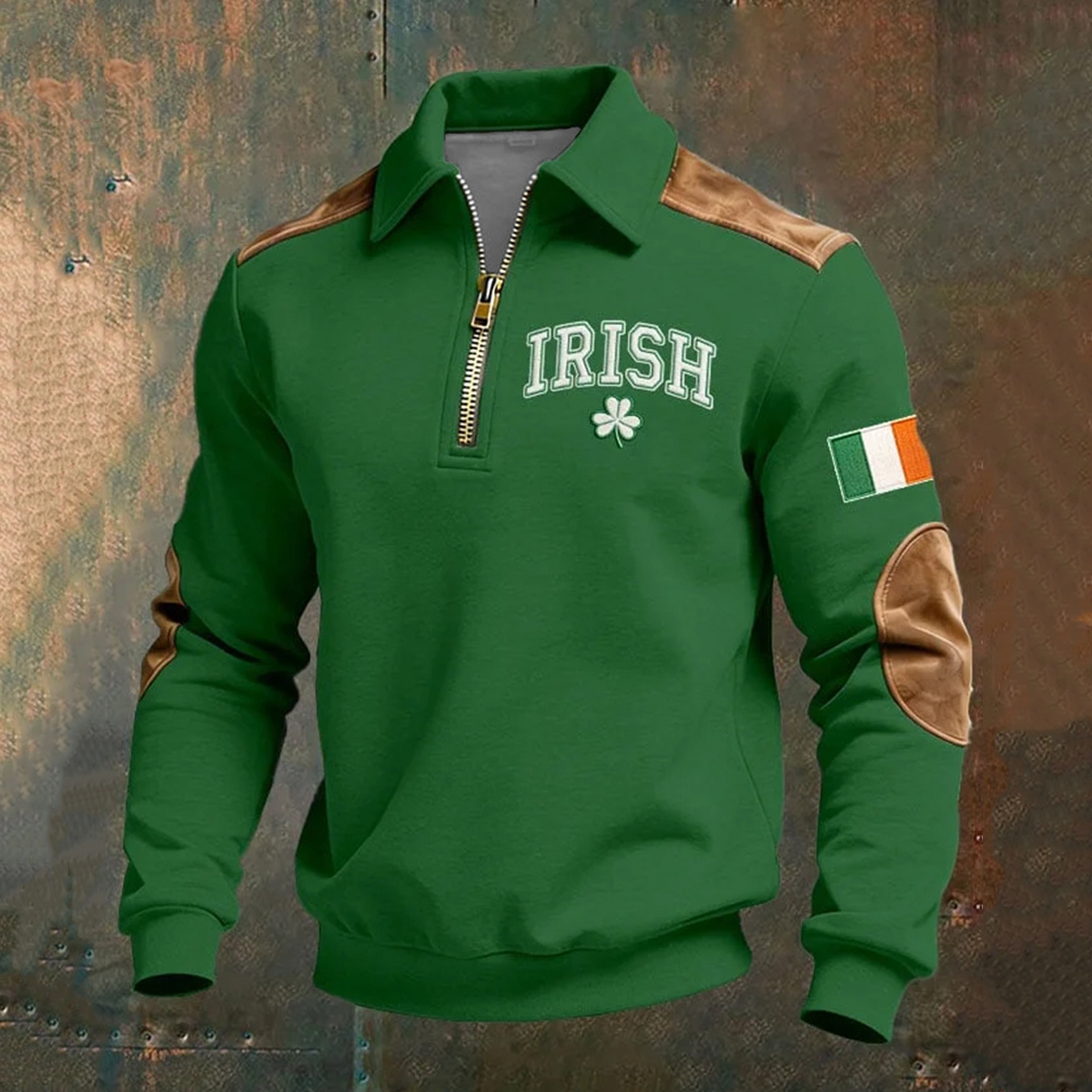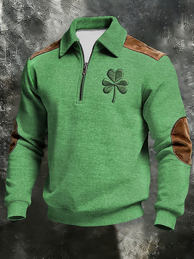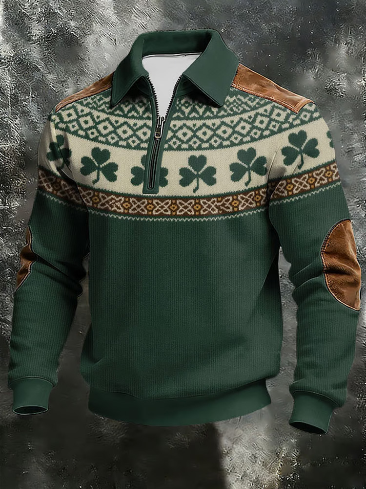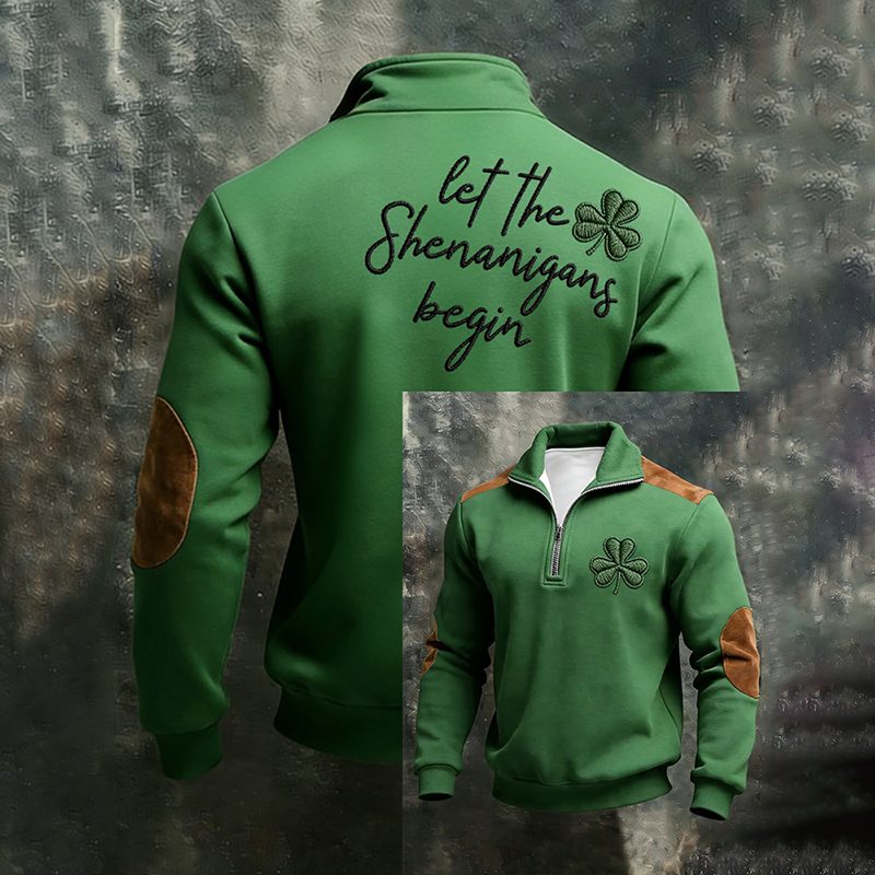 Men's Funny Let The Shenanigans Begin St Patrick's Day Shamrock Print Casual Zipper Pullover