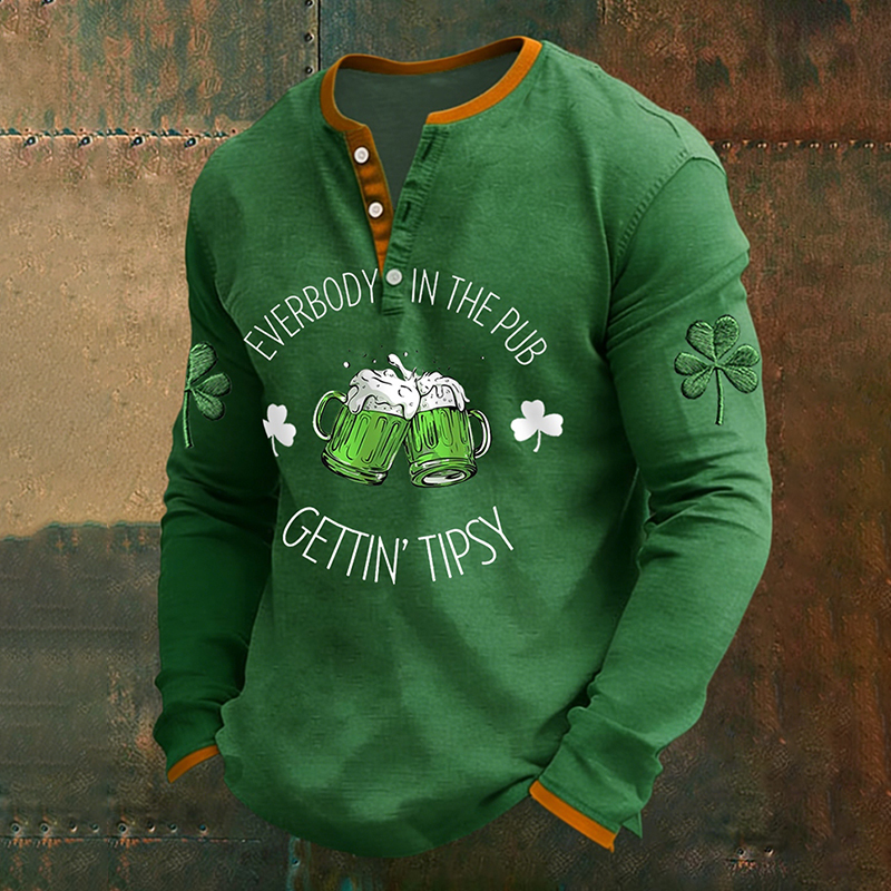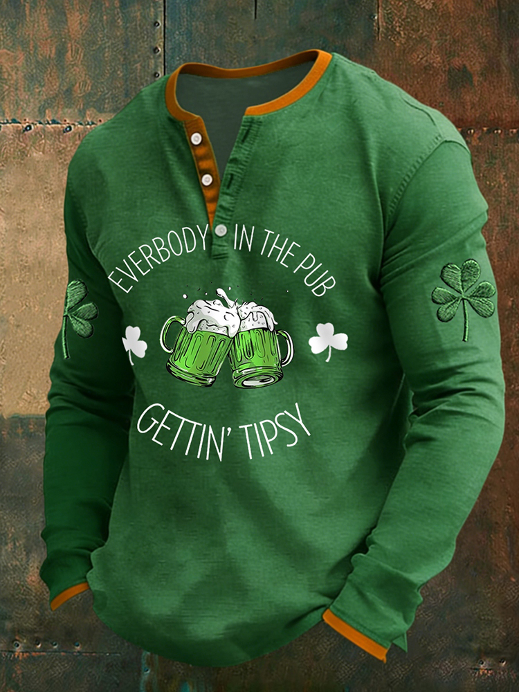Men's Funny St Patrick's Day Everybody In The Pub Gettin Tipsy Green Beer Shamrock Print Long Sleeve T-shirt
