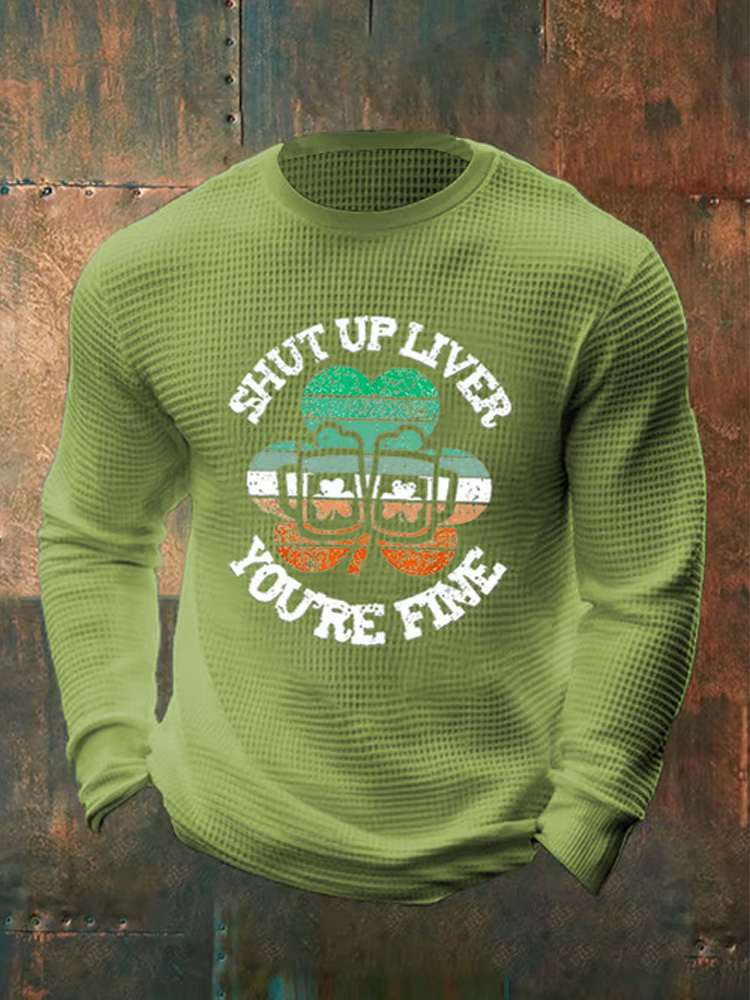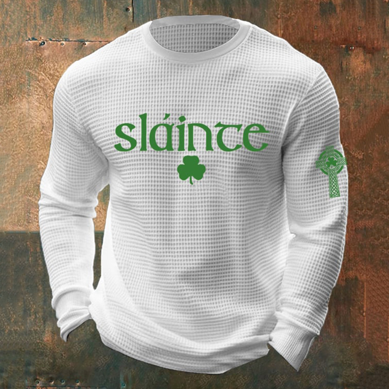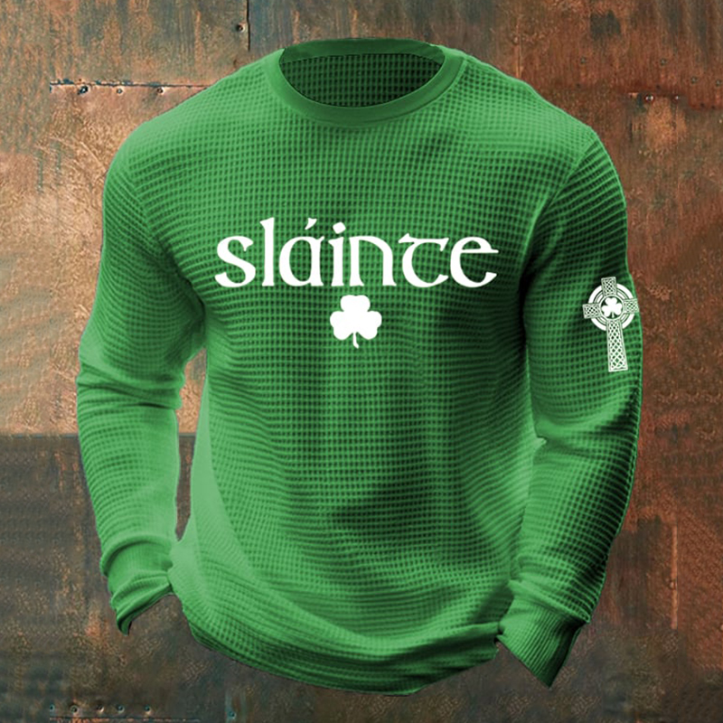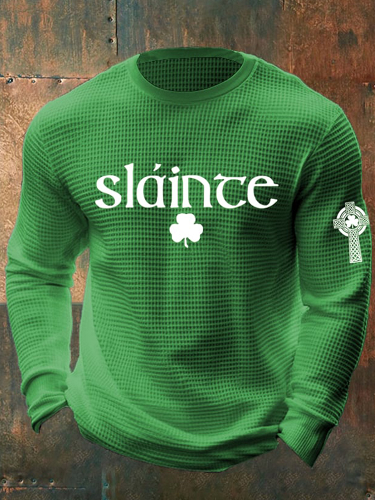 Men's St. Patrick's Day Print Waffle Long-sleeve Sweatshirt