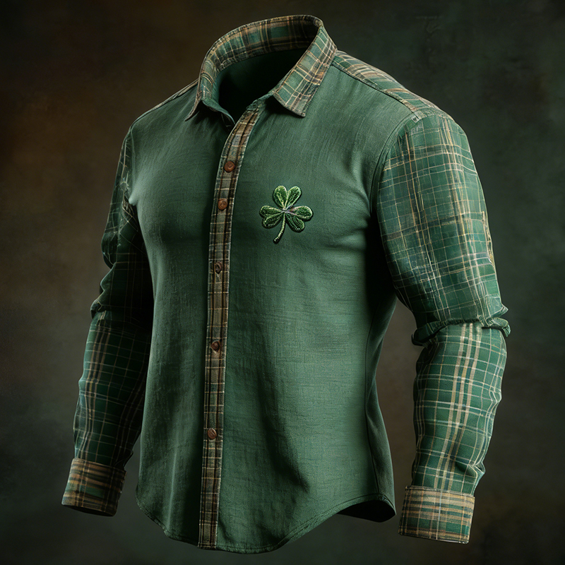 Men's St. Patrick's Day Shamrock Plaid Print Shirt