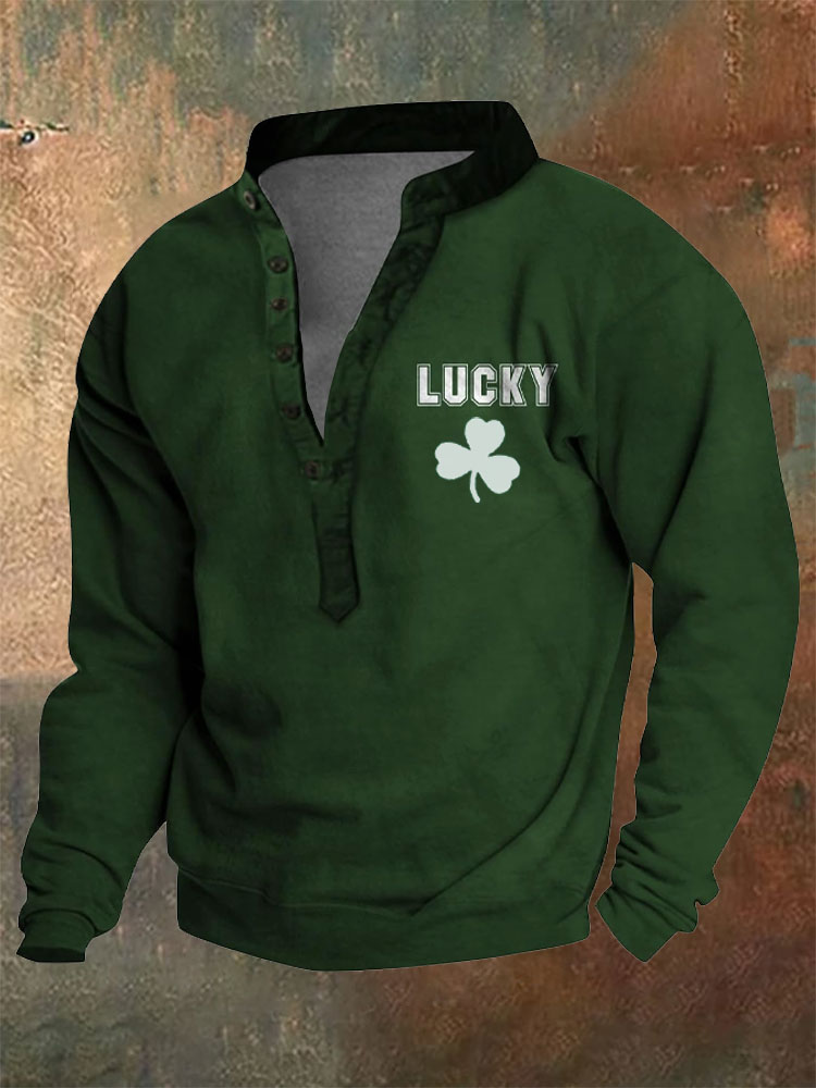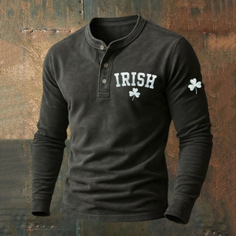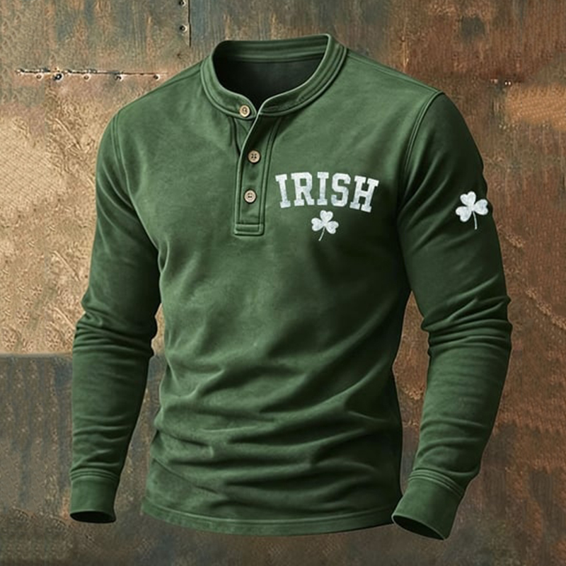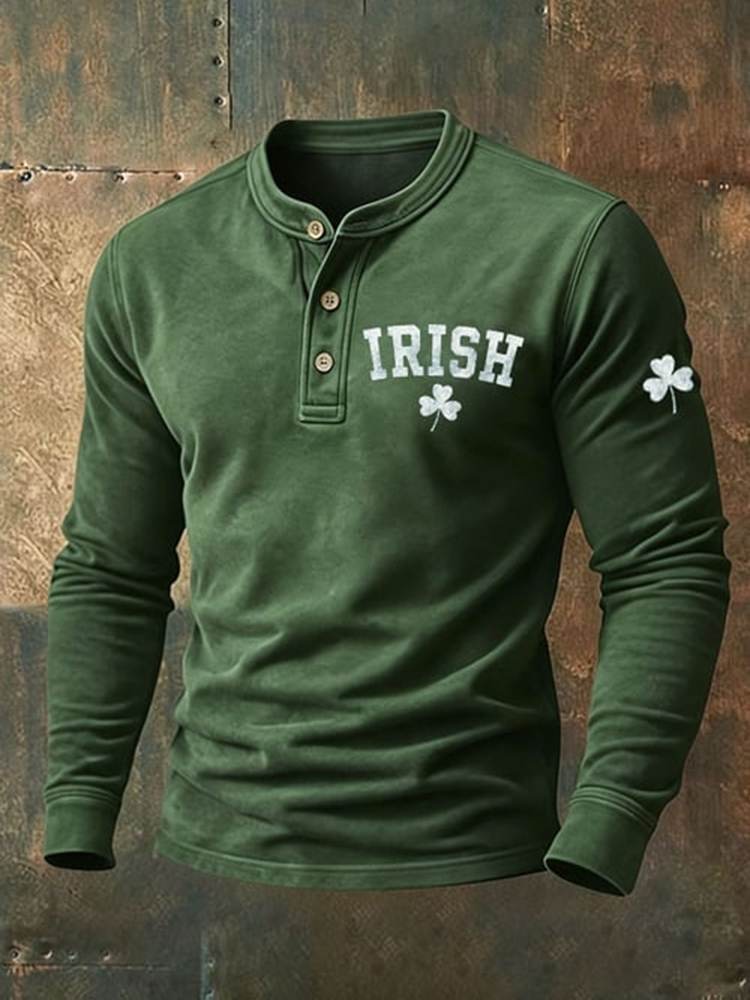 Men's Vintage St. Patrick's Day Print Henley Neck Shirt